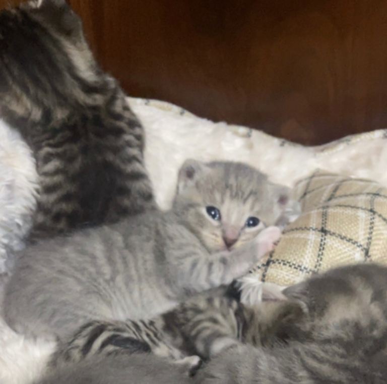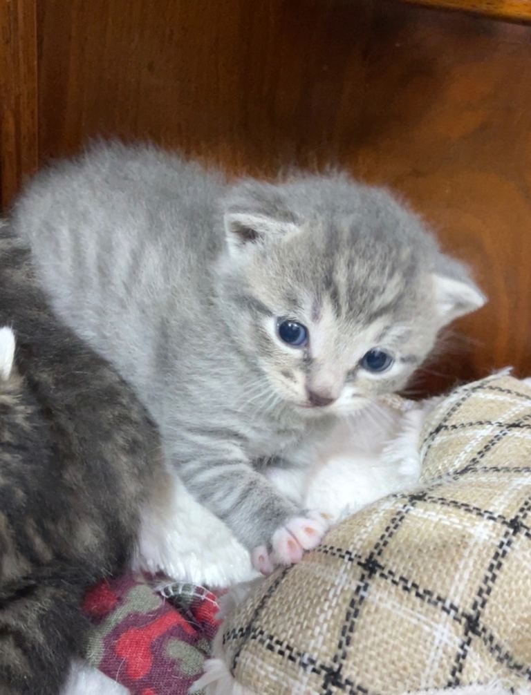 We have 3 light grey kittens which are male