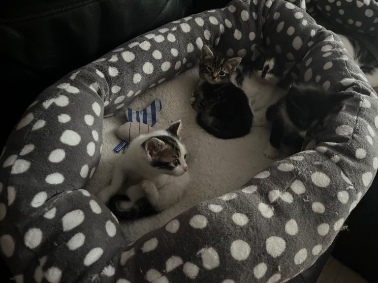 4 Gorgeous Kittens for sale. They are allready litter trained and only 4-5 weeks old. Very forward and clever playful kittens. Mother is very clever and loving towards people and her kittens. Will not be disappointed with these adorable kittens.