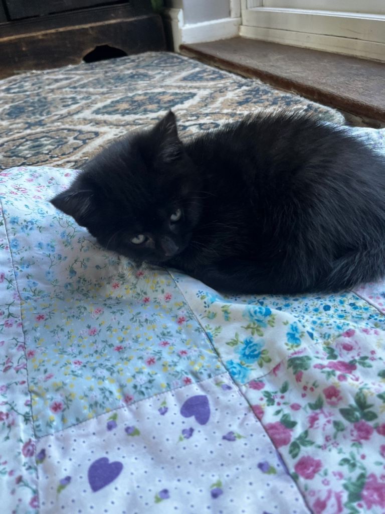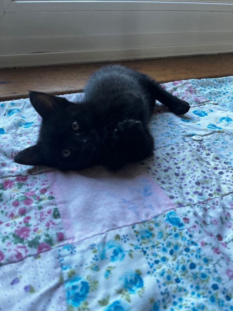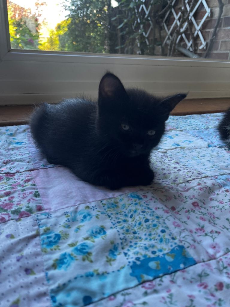We have three black kittens, two boys and one girl.