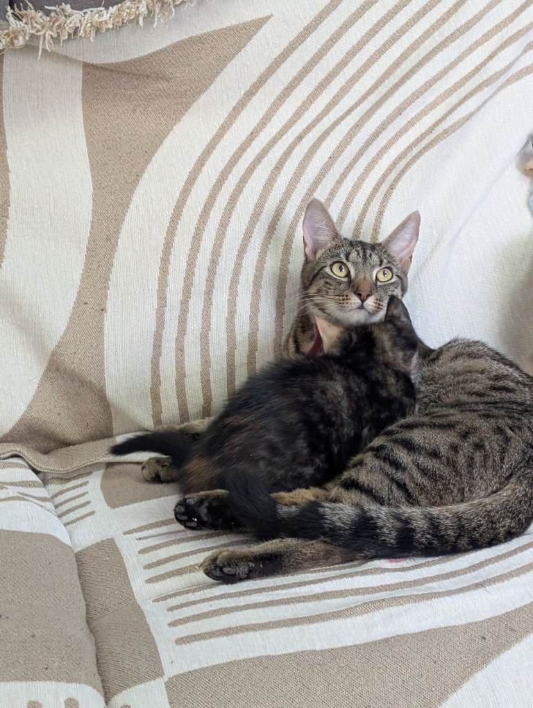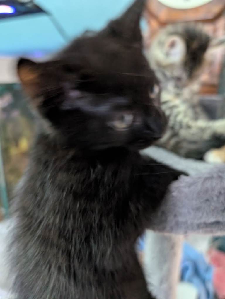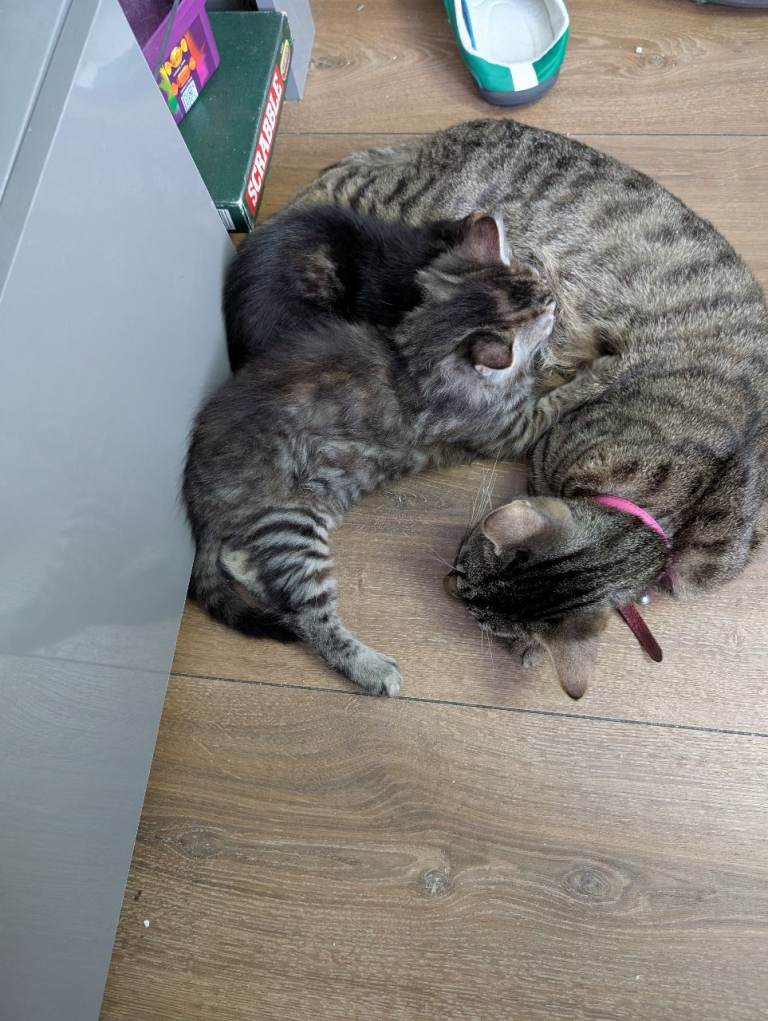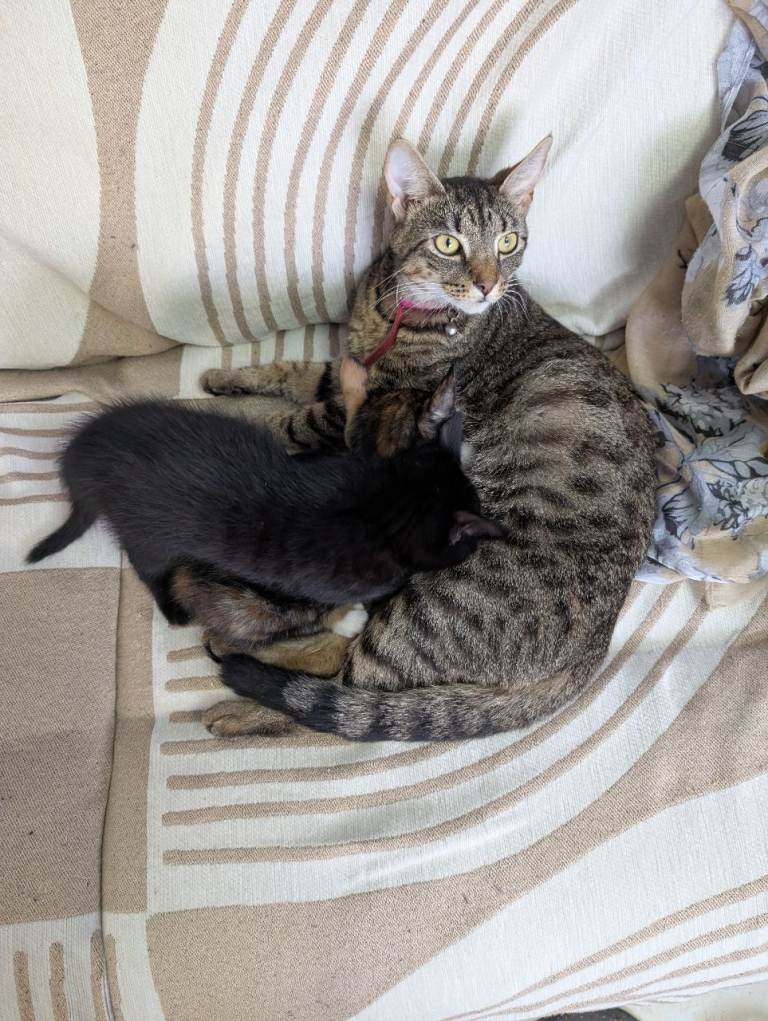 I have three young kittens up for sale, one grey tabby, one all black, and one black and mottled. They were born in the early hours of the 1st of January. The black one is believed to be a male and is £110.00, the tabby is believed to be a female and is £150, and finally the black and mottled is also believed to be a female and is £110.00. They have not been microchipped or vaccinated, but have been treated for worms and de-fleaded.
