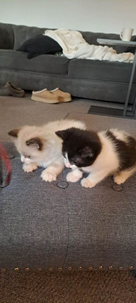 Two lovely kittens, now ready to leave mum to find their forever homes.