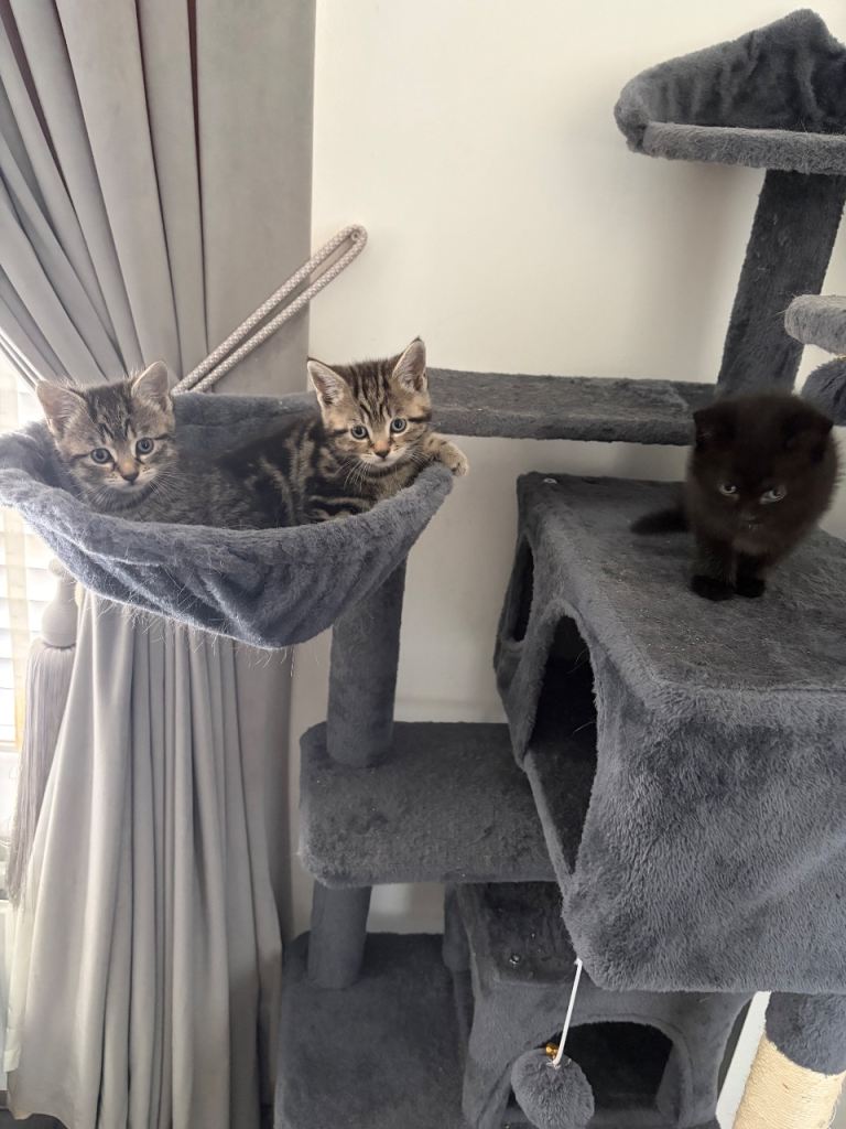 I have 3 beautiful kittens ready to find their forever homes. They are litter trained & eating wet and dry food. They have been raised with young children, a dog & another adult cat therefore they are very confident babies.