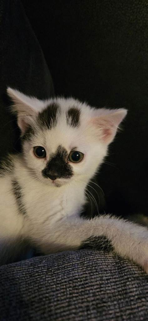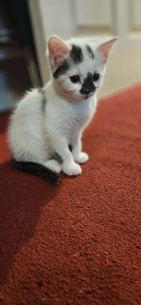 1 Female kitten white and black with distinctive black markings on face ( Sold pending collection)