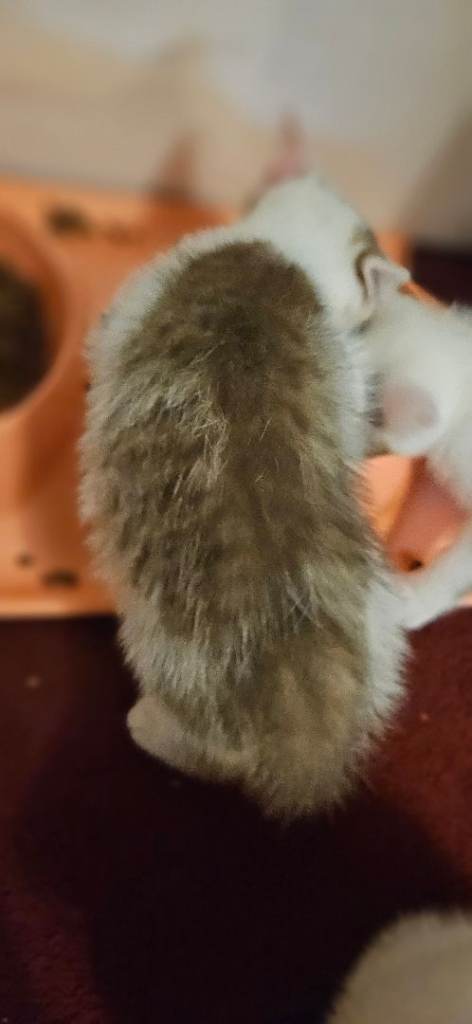 Kittens are all litter trained, eating wet and dry food. GoCat kitten food and they have started eating mums GoCat adult food and Felix kitten pouches.