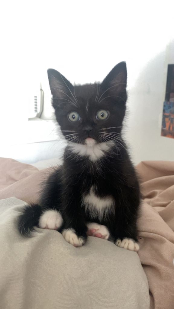 Looking for a handsome new best friend? Meet our gorgeous tuxedo boy! At 12 weeks old, he’s at that perfect age where he’s full of personality but already knows the house rules.