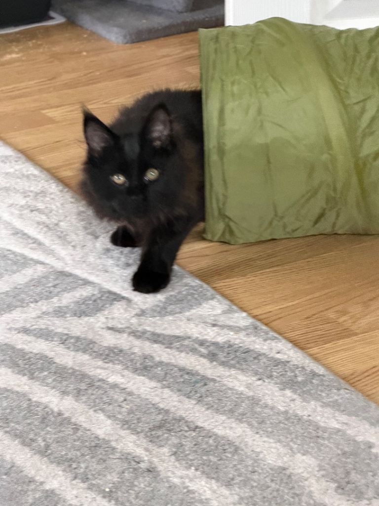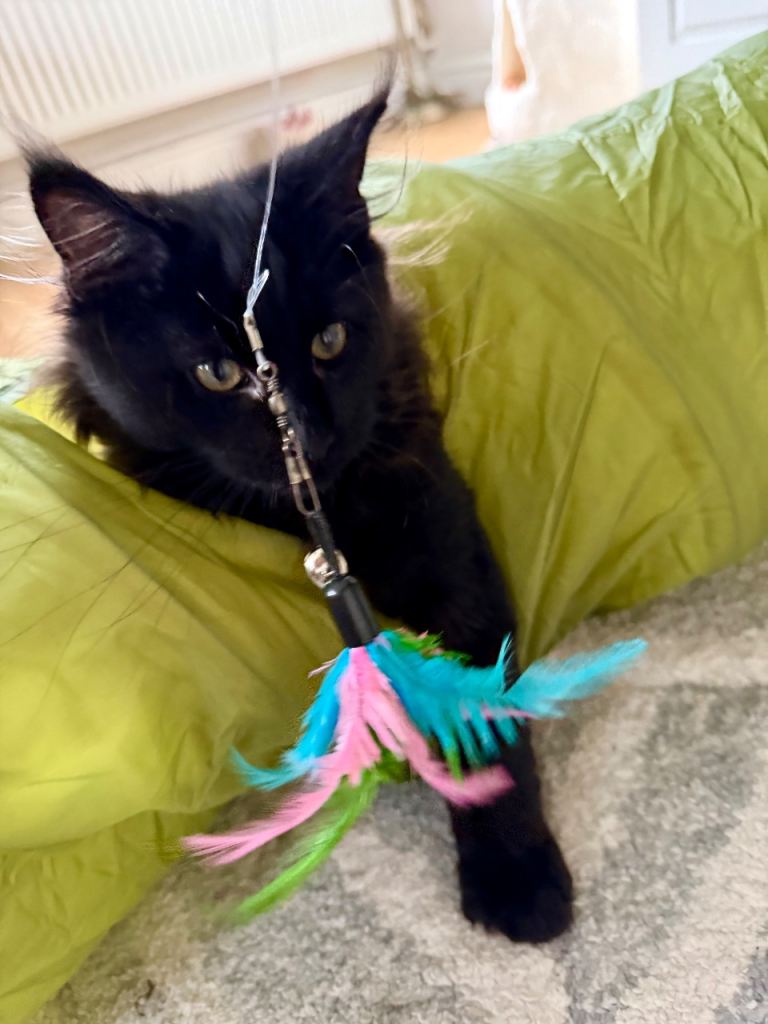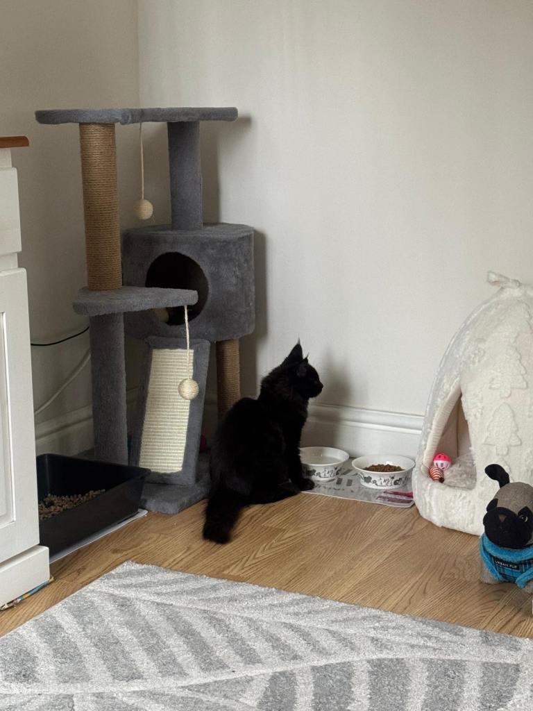 Beautiful 18 weeks old male black kitten, lovely little personality, he’s very laid back, cuddly, already litter trained too. We bought him 2 weeks ago but unfortunately I didn’t realise I was allergic to cats, and sadly we have to rehome him. We still in contact with the owner and they are happy to help with any questions about him and still like to know how he’s doing. Will come with all the toys, bedding , house we purchased for him he deserves the best home.