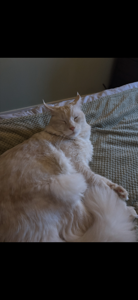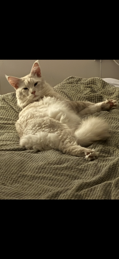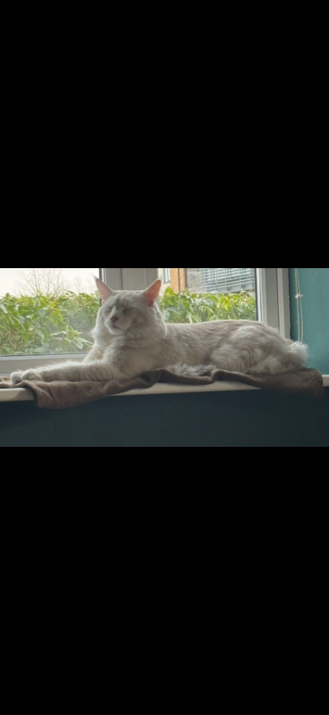 Stunning cream and white, very affectionate and chatty, calm in nature but enjoys playing with his toys and the lazer! He is not neutered. He eats and drinks well, is litter trained and is so so loving! He’s around 8kg so far.