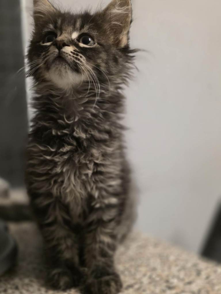 She is being raised as an indoor-only kitten, which is strongly recommended for Maine Coons. She has a bright, playful personality and is full of energy. She loves to run, explore, and enjoys being around people. She would be very well suited to a home that can offer her plenty of interaction and affection, helping her continue to grow into a confident and happy companion.