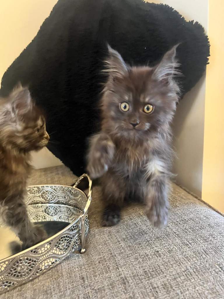 Ready for new homes 27th March. Two separate litters, same black smoke champion Dad. Mum’s are red smoke and silver.