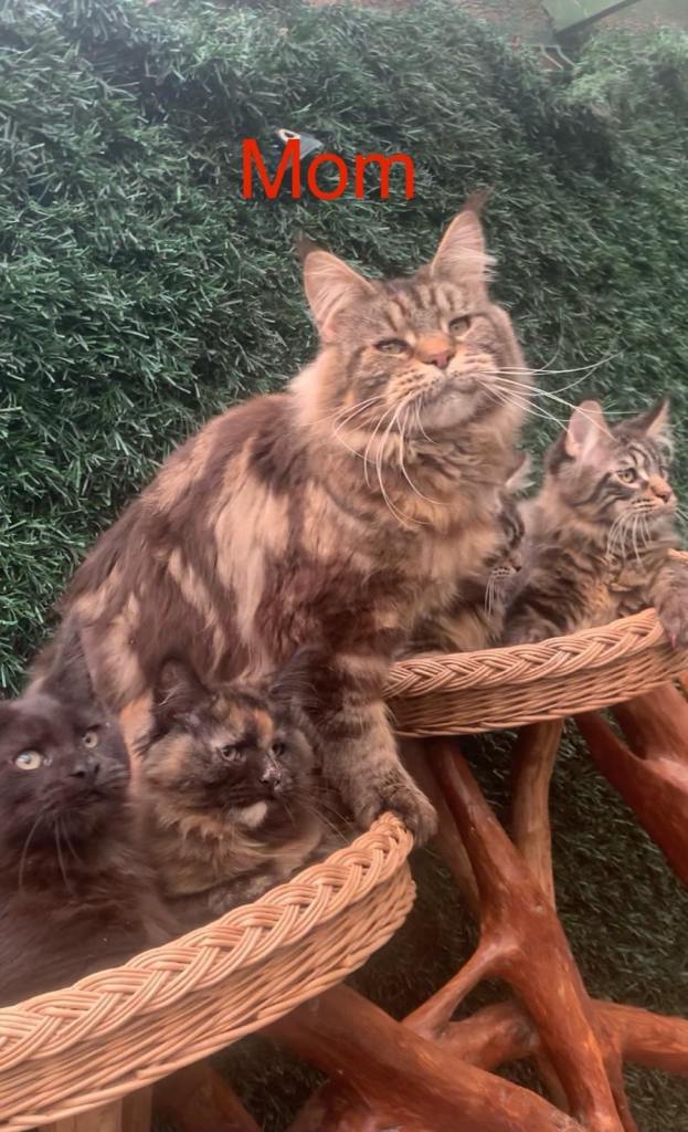 We are pleased to introduce three beautiful purebred Maine Coon kittens looking for their loving forever homes. Both parents live with us and can be seen. All kittens are healthy, playful, and very affectionate.