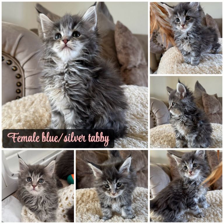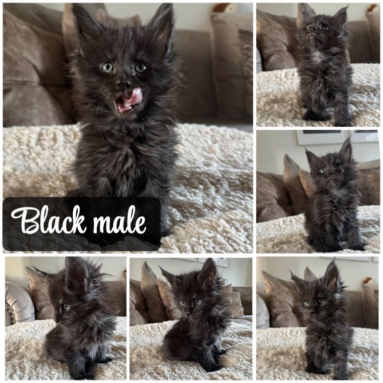 Here I have a litter of beautiful Maine coon babies who have a mixture of colourings and sexes to choose from.