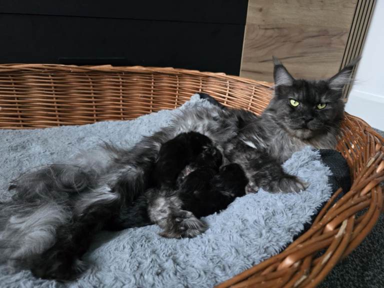 Parents are pure blood pedigree Maine Coons with pedigree certificates.