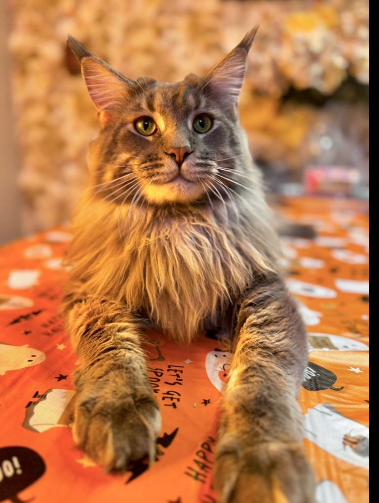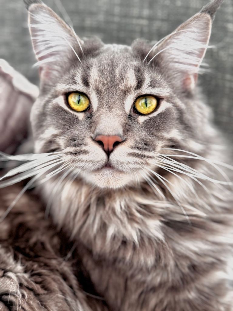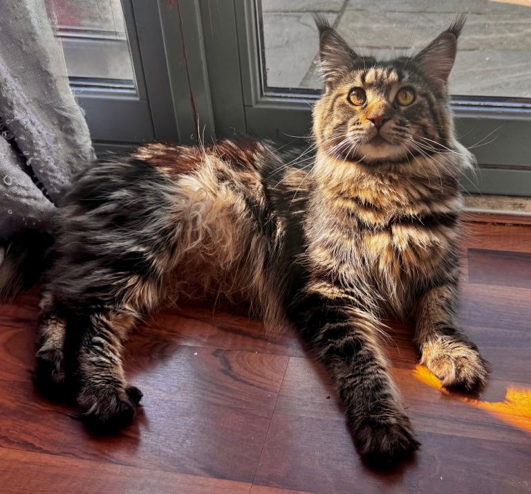 Maine Coons are large, gentle (gentle giant) and affectionate cats. Highly intelligent, sociable, playful and vocalised with lots of chirps and trills. Enjoying attention and being around people they will follow you from room to room all day long, often being referred to as “dog like” for their loyal and playful nature.