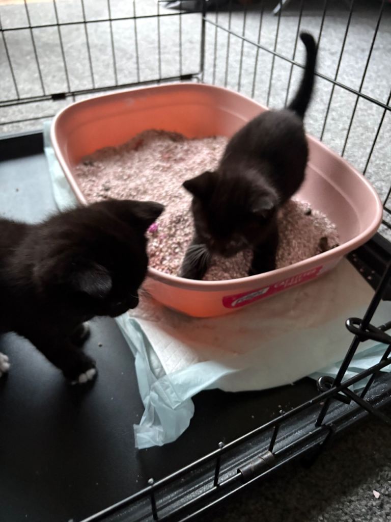 Litter trained , eating dry and wet food