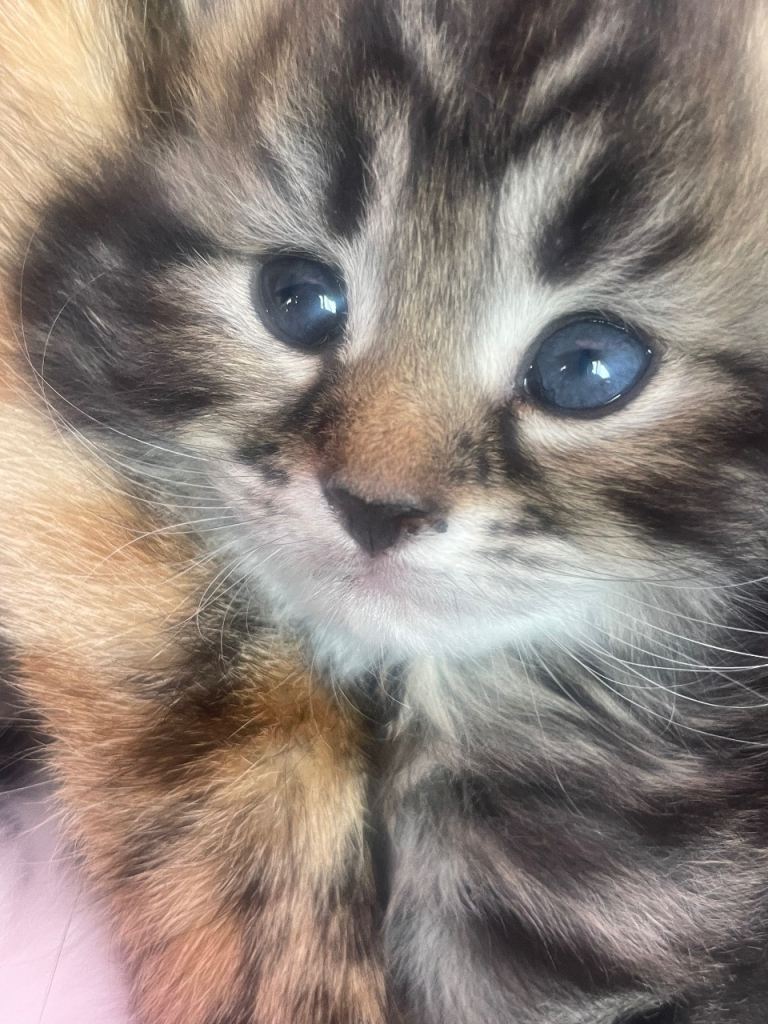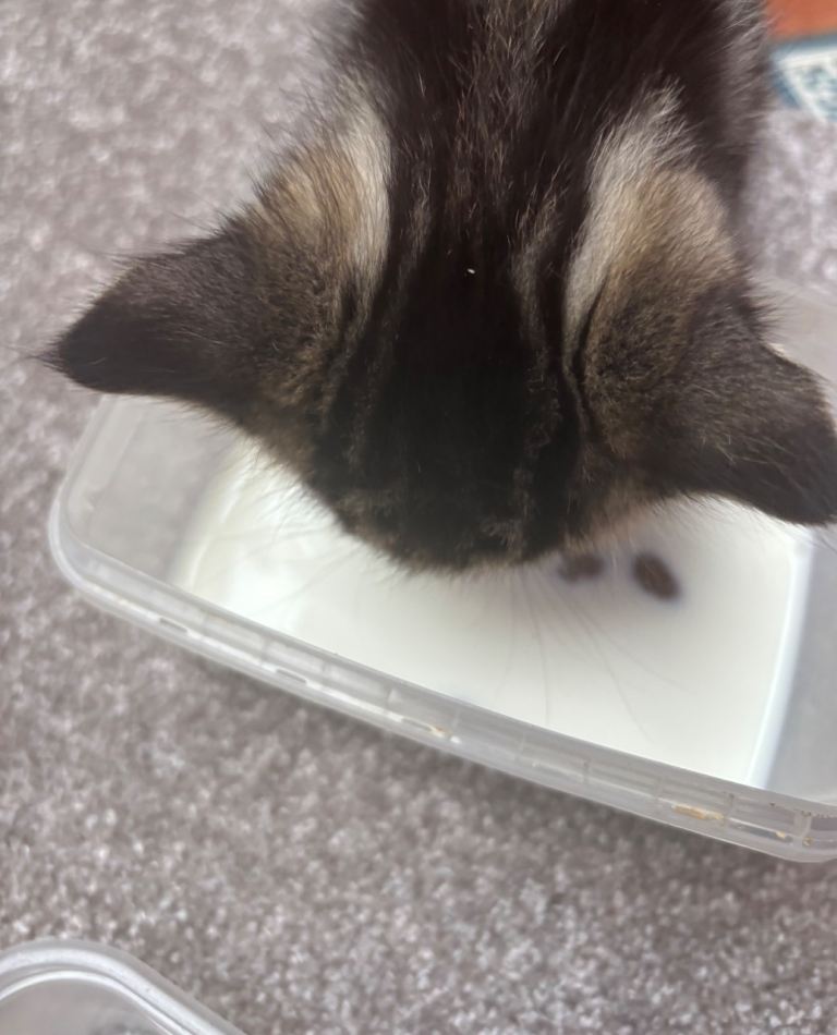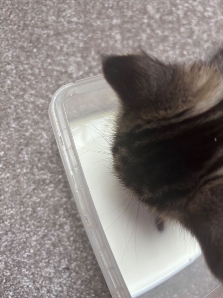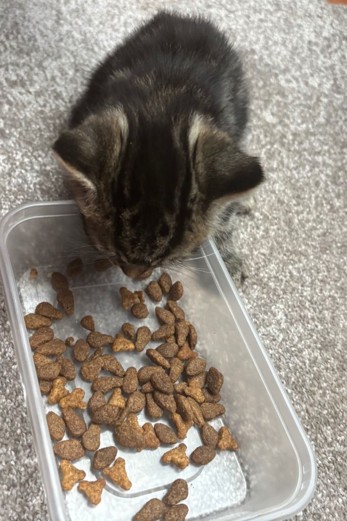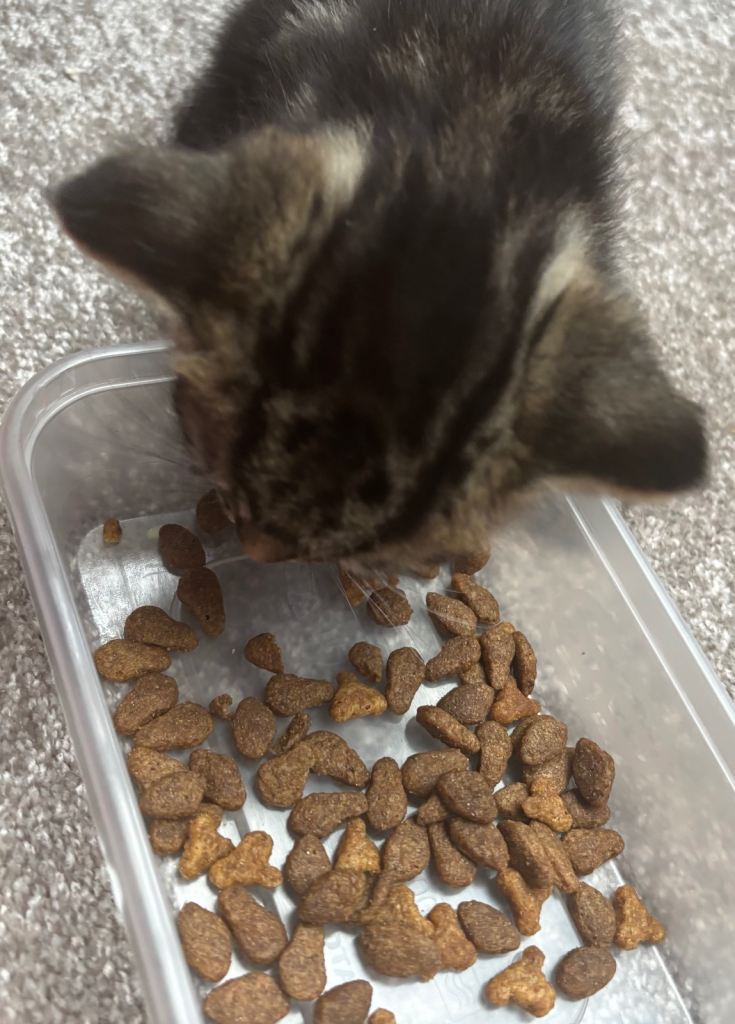 He is a very energetic and playful cat who is very used to being around people as he in a house with a lot of them including kids. He is full weaned and eats and drinks by himself as shown in pictures where heโs accidently dropped his food into his milk ๐ he has a preference for dry food. he likes string toys and enjoys chasing things and attention. he uses a littler box and also is familiar with pee pads and just needs a little guidance but is pretty independent. if possible, bring your own cat carrier or else we will provide you with a cardboard box for the time being. mother is a tortoiseshell cat and father is a bengal.
