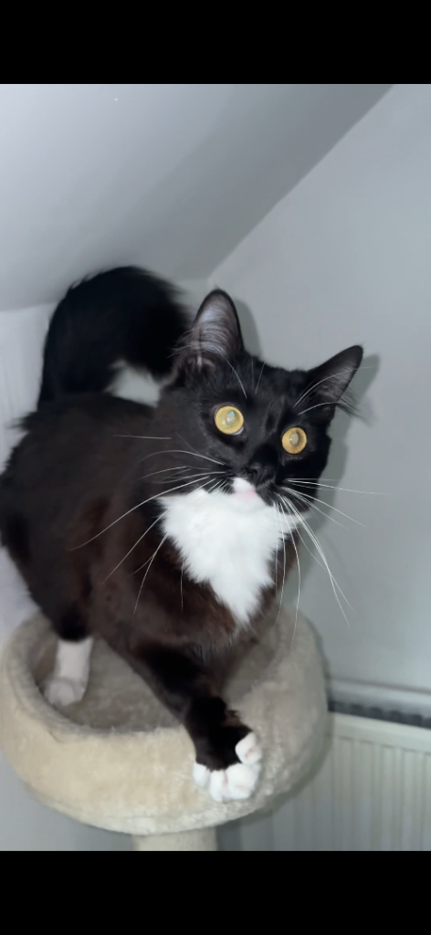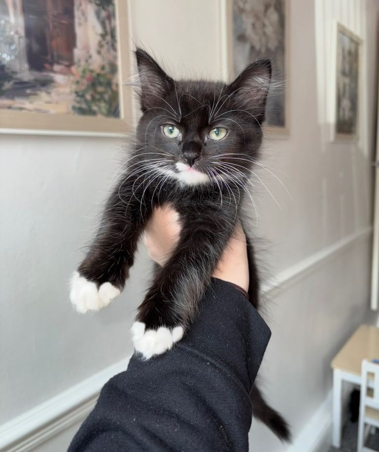 Lovely 12 month old male Maine Coon mix looking for a new home due to an upcoming move. He is very affectionate, well behaved, and fully litter trained. He has a gentle nature and enjoys attention, Friendly around other animals and children making him a great companion. This is a sad rehoming, so we’re looking for a loving home where he’ll be well cared for. Not neutered due to always being inside.