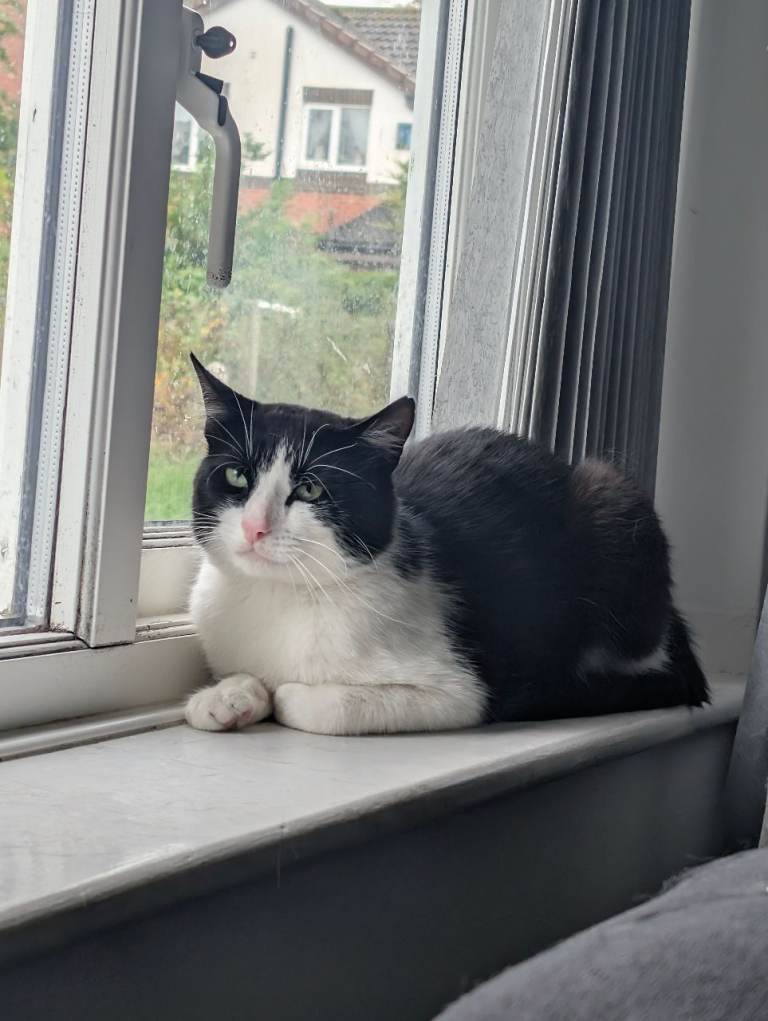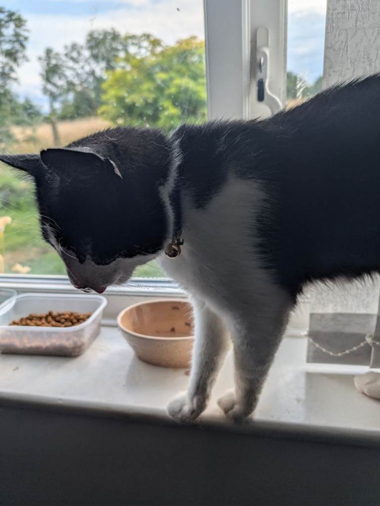 British black and white short hair male around 8 years old, neutered and chipped/ flea and wormed regularly.