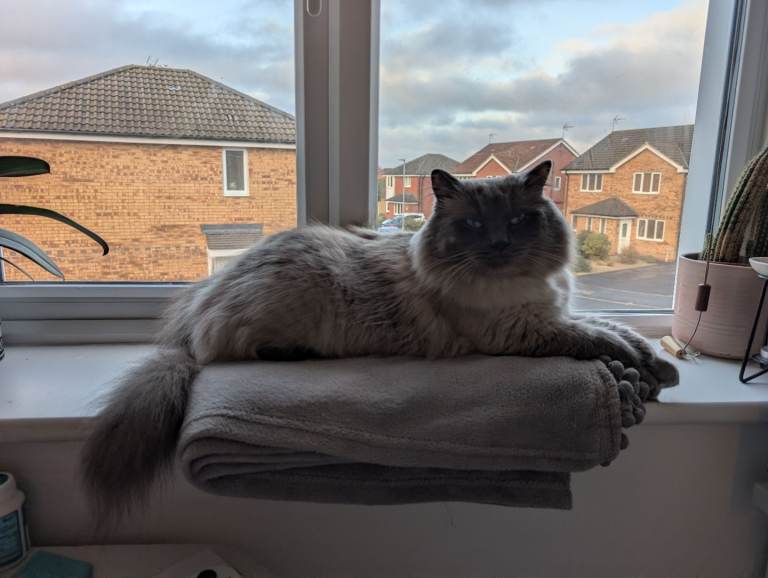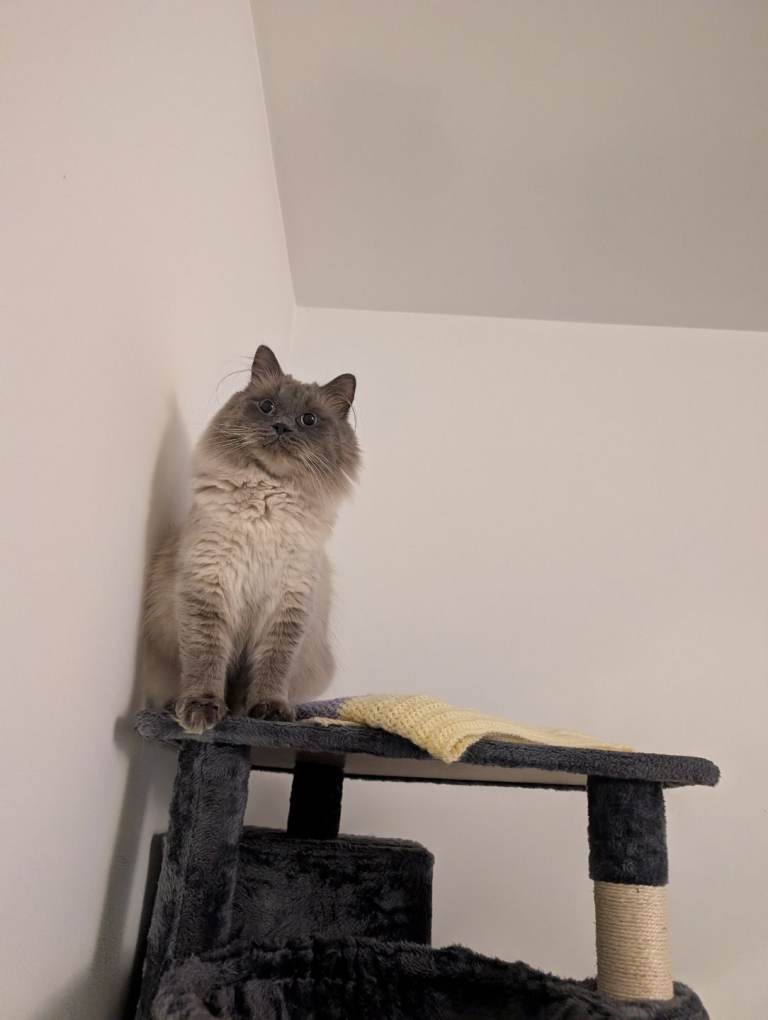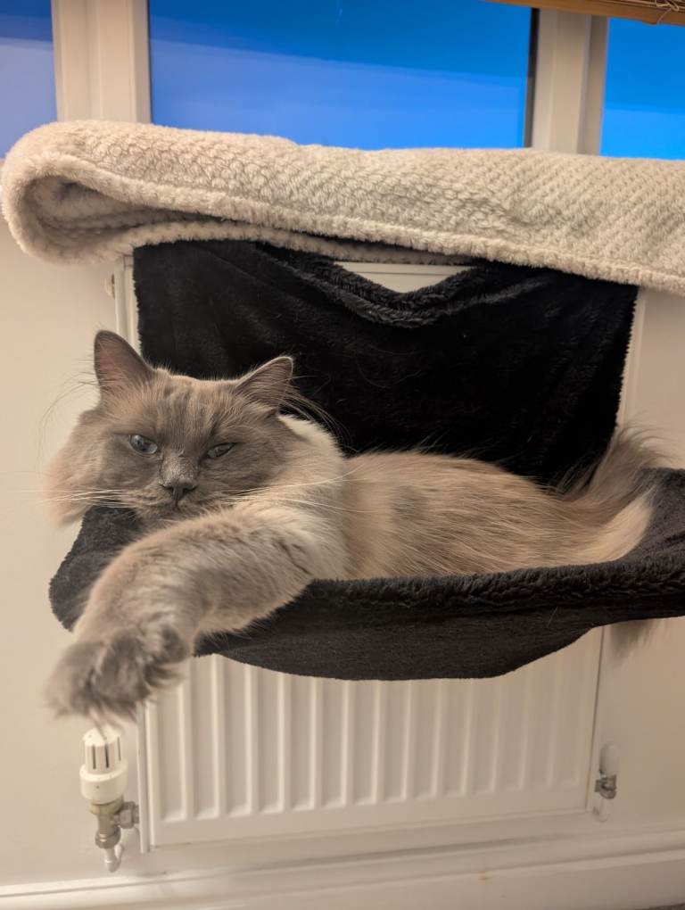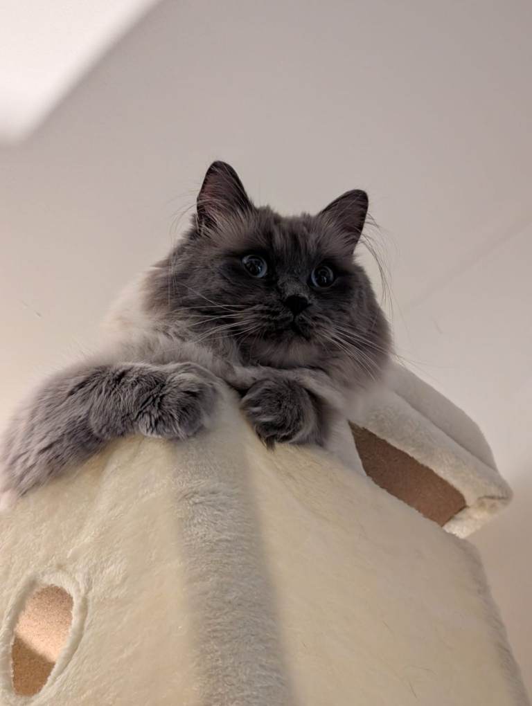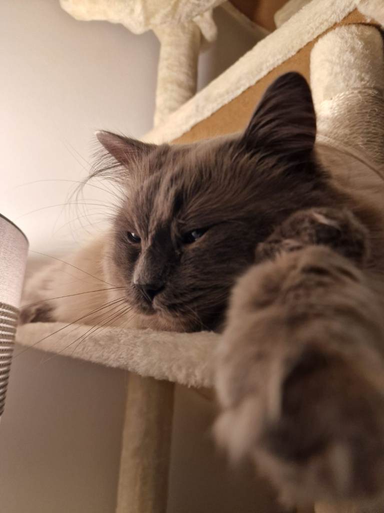 Blue is such a lovely kind natured little boy looking for his forever home. We adopted Blue mid 2025 in the hopes he would complete our little family of kitties. Unfortunately through no fault of the previous owner, we discovered he does not get on very well with other cats and would be better suited to a home with no other animals. He does have a natural curiosity for outdoors but ragdolls unfortunately do not have the instincts to survive and defend themselves outside so he must be kept indoors at all times or harness trained to go for walks in the future once he is vaxxed.