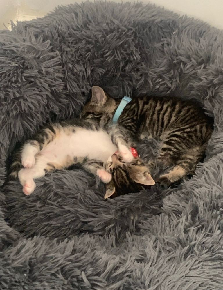 they are litter trained, eating both wet and dry food, have had their first baths and their nails trimmed.