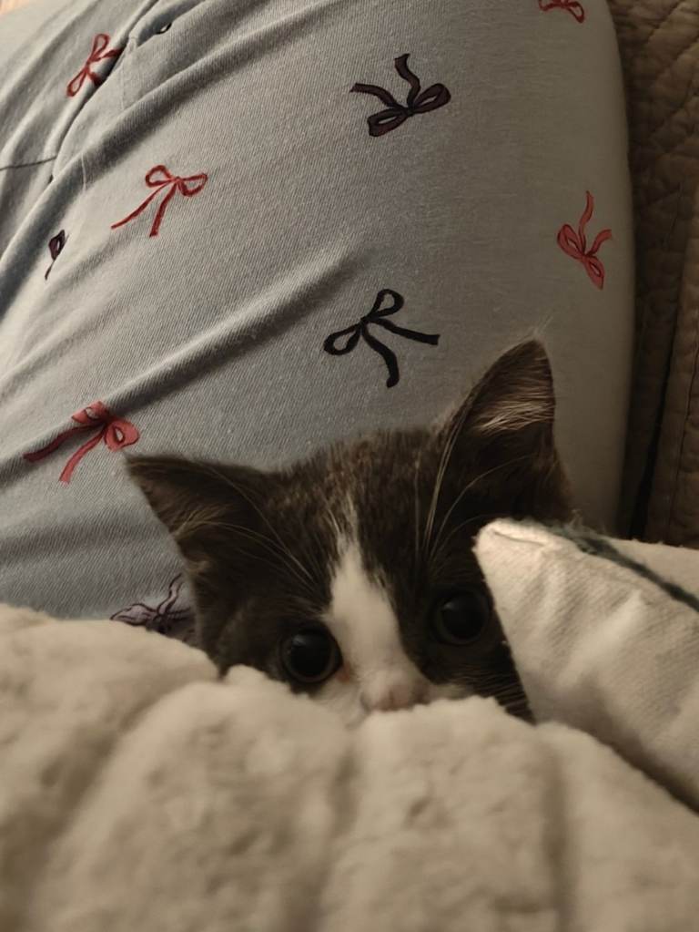 He is very loving cat, doesn't make much noise too, he always wants cuddles and doesn't even come upstairs till he heard us waking up in the morning.