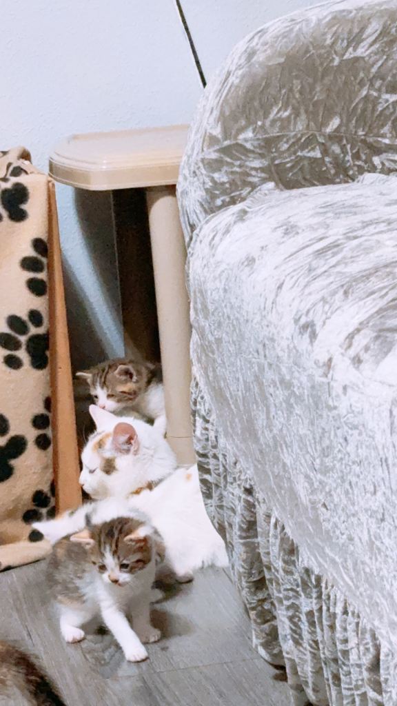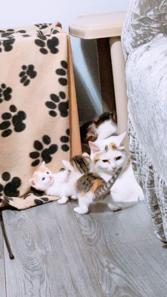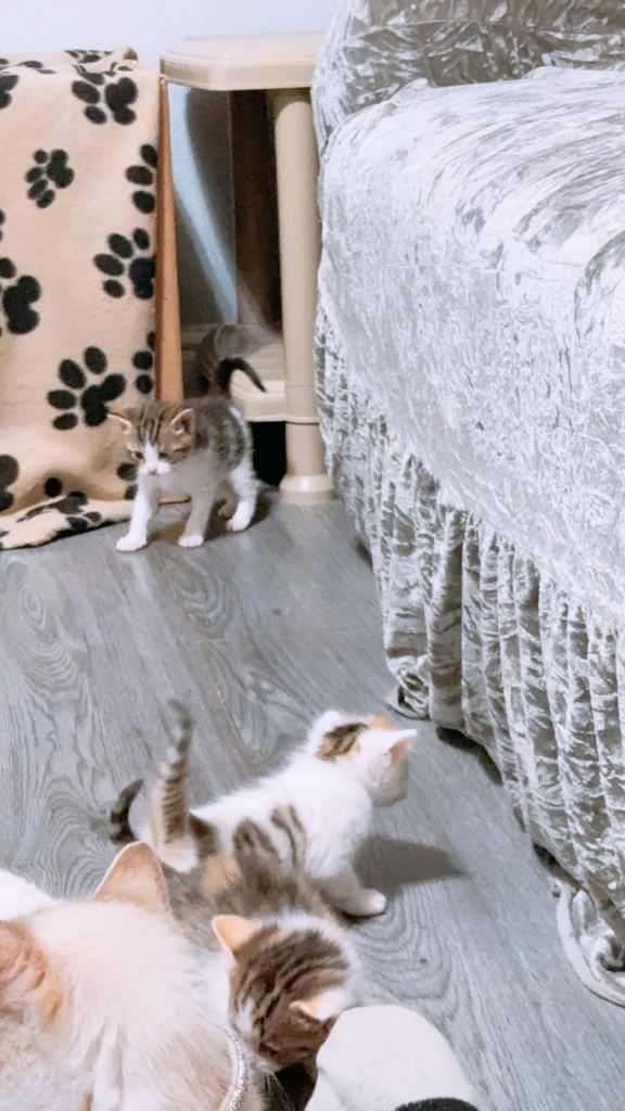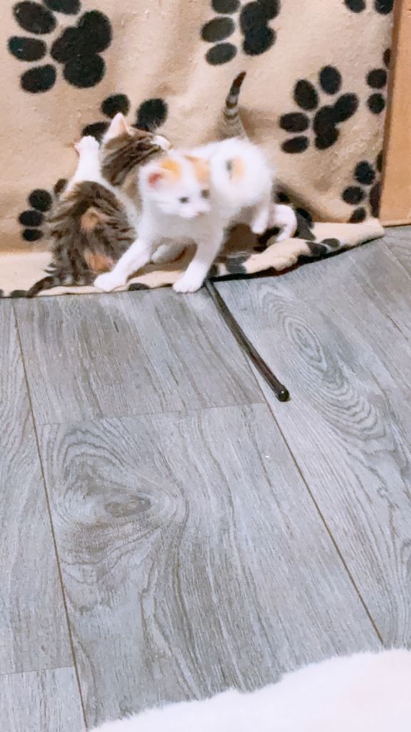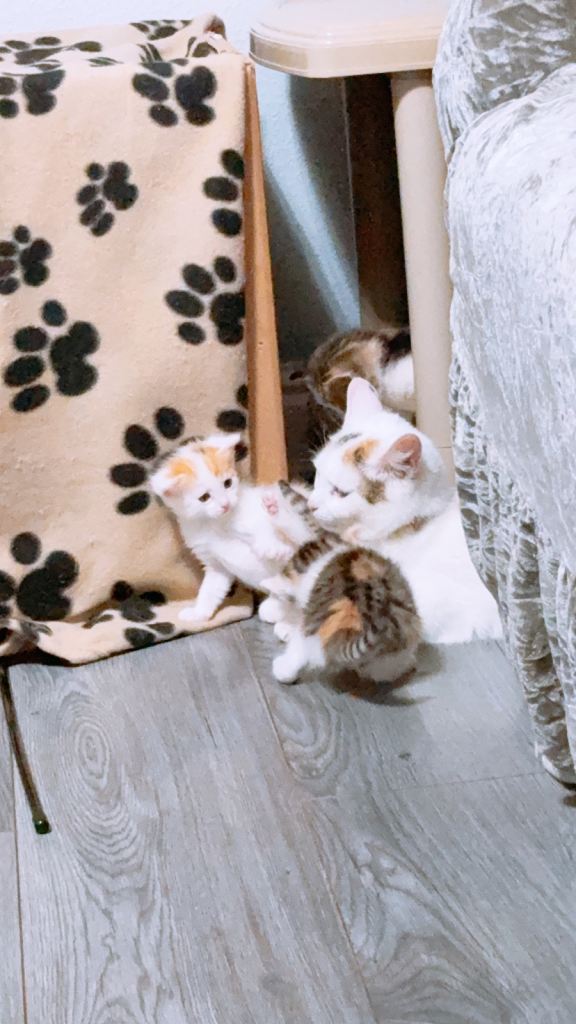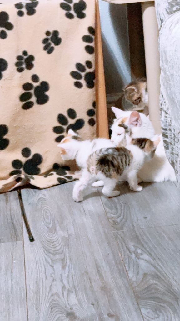 Hi everyone my beautiful mixed Turkish angora mom cat has had her first litter n she is blessed with 4 adorable cute kittens. Kittens are all in very good health . they have had their first vet check up n everything is ok there no concerns. Kittens were born on the 25th of march 2026 . N will be ready to leave into their forever loving homes on the 27th of May. Kittens will be litter box trained n feeding independently b4 they all leave . Also they will be having their first fle n womer treatment before leaving . I have put moms pic on add so viewers can see mom cat too . All kittens are very playful at all times n have an amazing personality they are use to being around my other adult cats n are ok around children. Viewers who are interested are more than welcome to come around n meet the kittens and reserve their kittens . I have 3 white with mix ginger brown markings which are (female) n one dark greyish n white which is our beautiful (male) . Thanks to all once again .