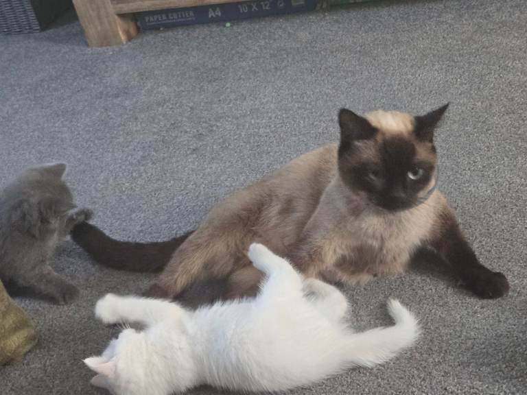 Both parents are family pets. Kittens have grown up with kids and other cats and dogs.