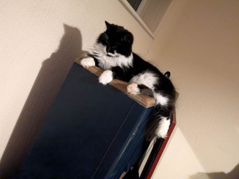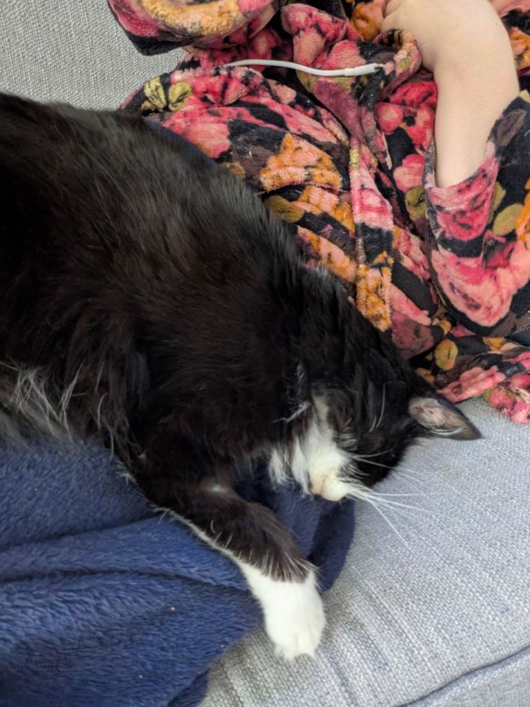 She is used to be left while I'm out, fully litter trained with wood pellets, and eats dry wiskas.