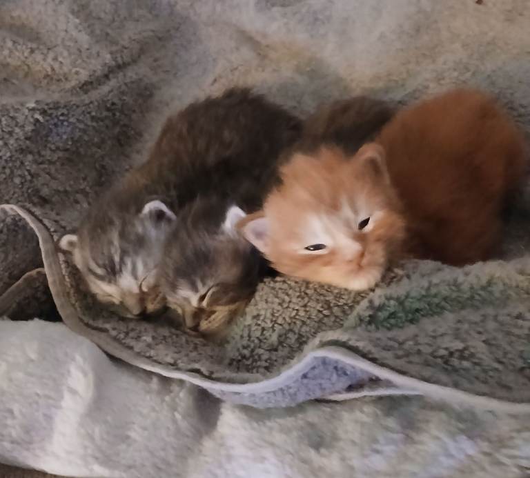 They are litter trained and starting to eat solids