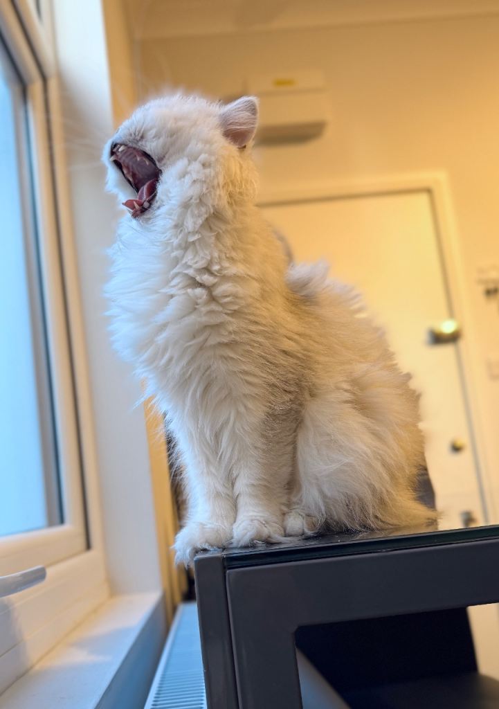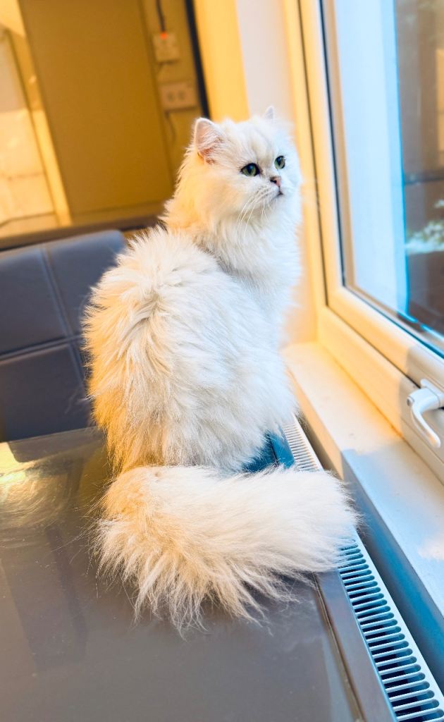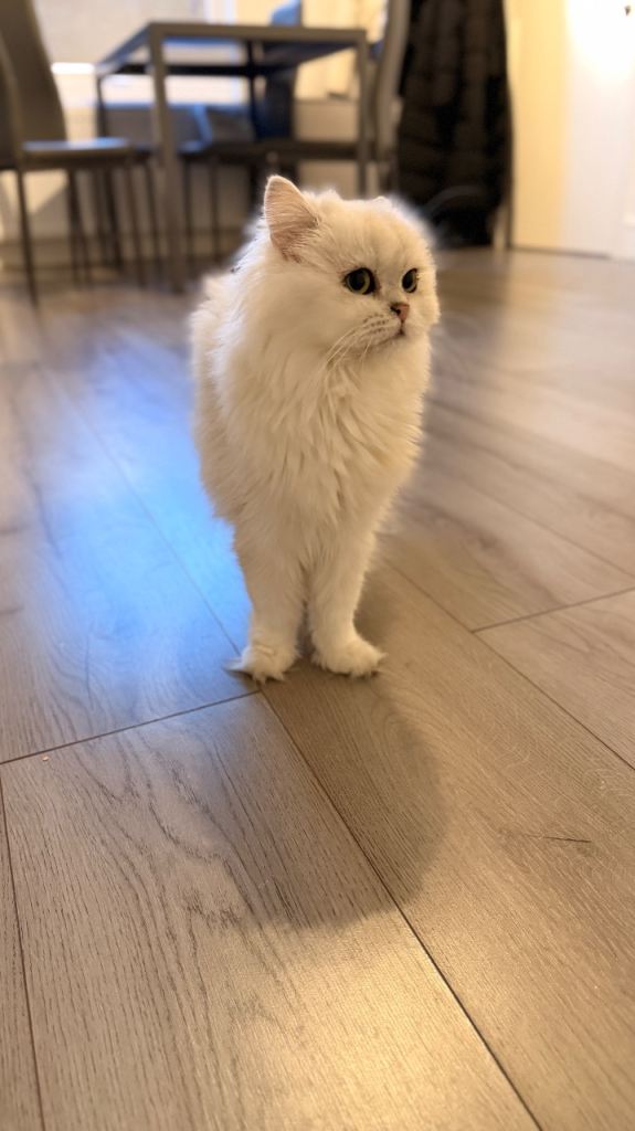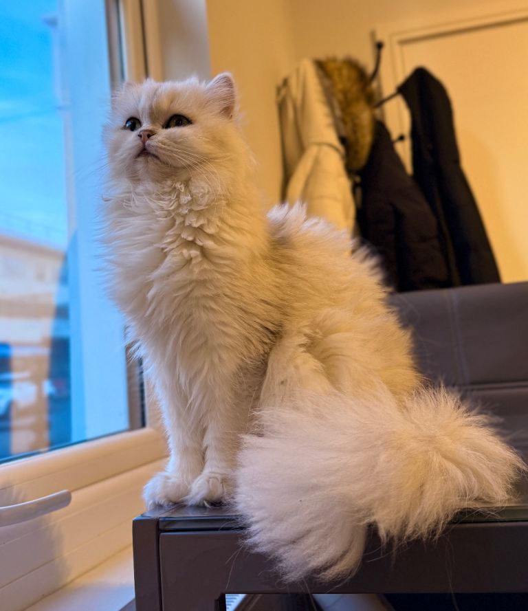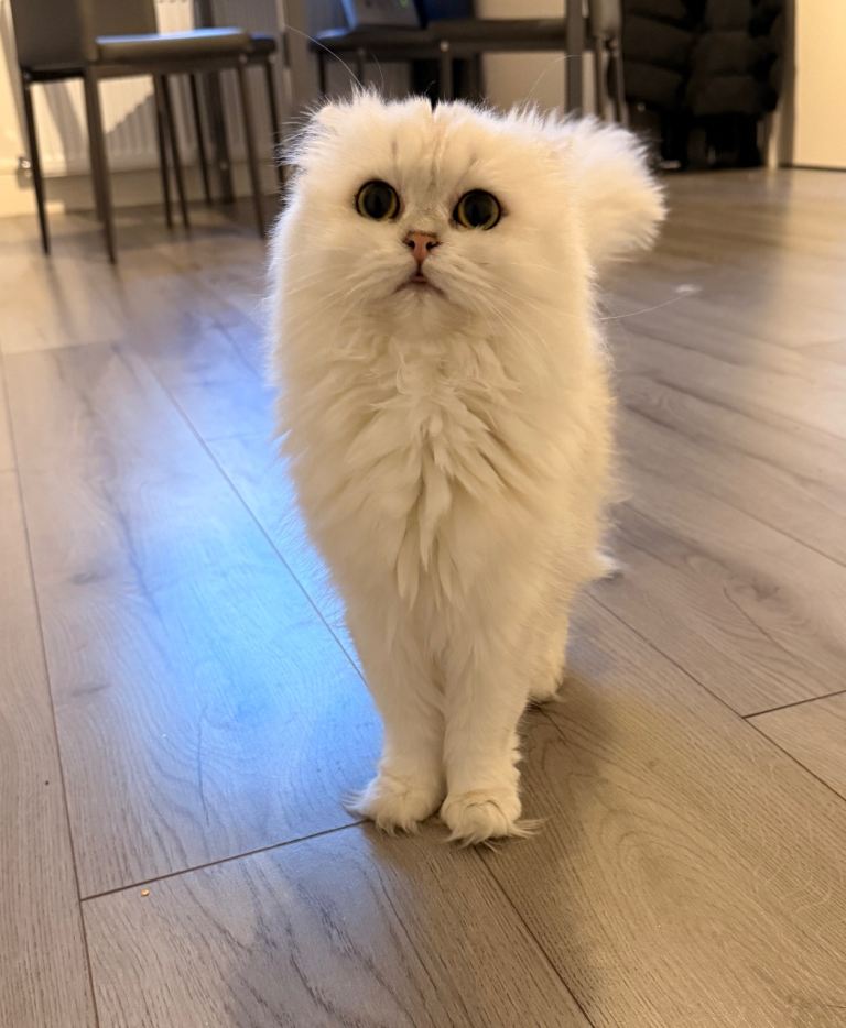 Snowflakes is a beautiful, purebred Scottish Longhair female kitten and truly one of the cutest cats I’ve ever seen. Her stunning white coat—resembling fresh snow—makes her unique and perfectly matches her name.