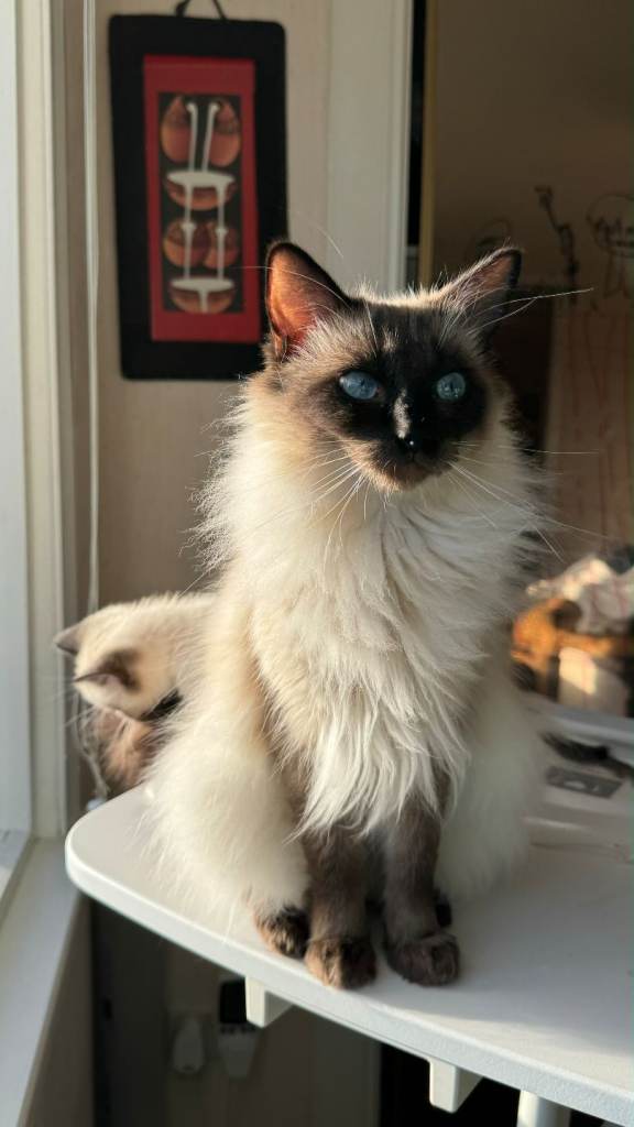 He has been raised in a calm family environment and is affectionate, gentle, and people-orientated, showing classic Ragdoll-type temperament traits.