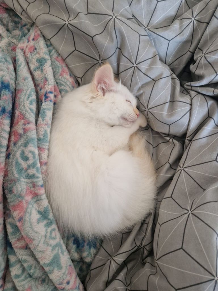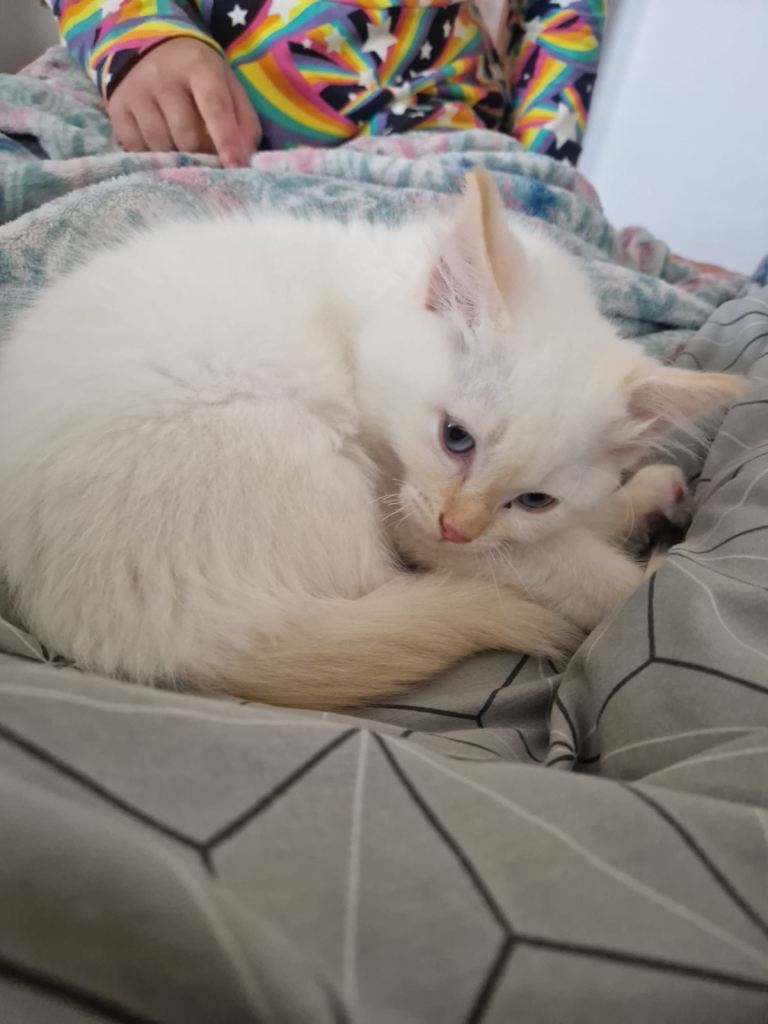 He's a very friendly kitten who likes kids and used to being around a big family. He likes to cuddle and follows you around. He's a very sweet boy 🥹💕.