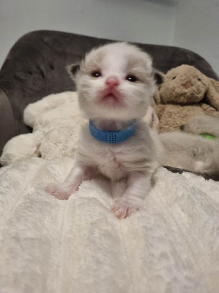 Our beautiful queen Mabel-Blue has safely delivered her gorgeous little Raggie Babies. She had 7 in total with absolutely no complications! We have the following....