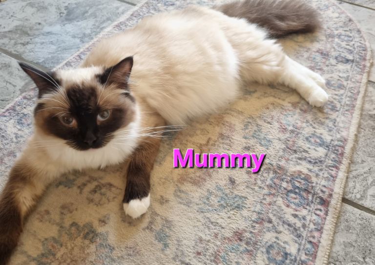 Mummy is a gorgeous Seal-Point Mitted queen with all relevant documents that shows a long line of champion family history.