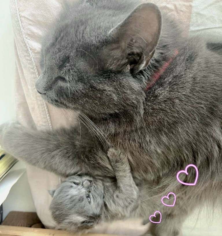 The mother cat is best suited for a single-pet household and will require a patient owner due to her rescue background.