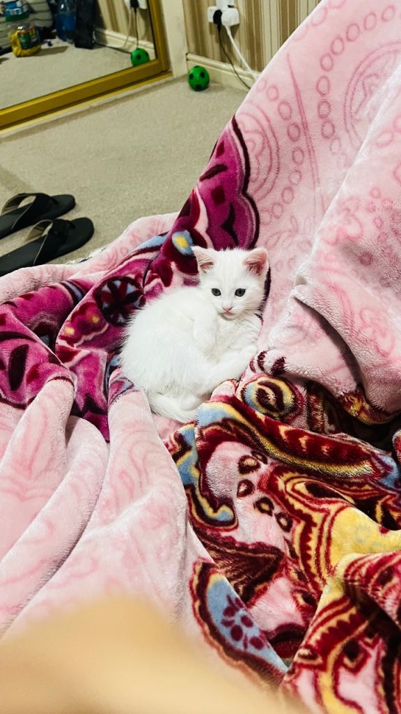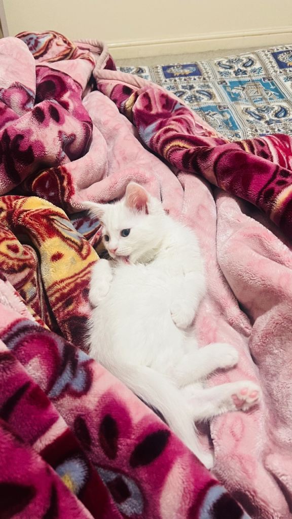 I have to post this with heavy heart. I have my turkish angora boy who is so affectionate and cuddly. I would like him to move to nice family where he can be looked after really well. We are moving out of country forever and have to look for a kindest and loving home for my boy. He is 3 months and Microchipped. He has his vaccine appointment on 12/01/26 and will be taken to take his first vaccine. He has been vet checked and he is very healthy boy. Do contact me if you are genuinely interested. We are hoping that he goes in 2 weeks time. If anyone is interested then msg me pls