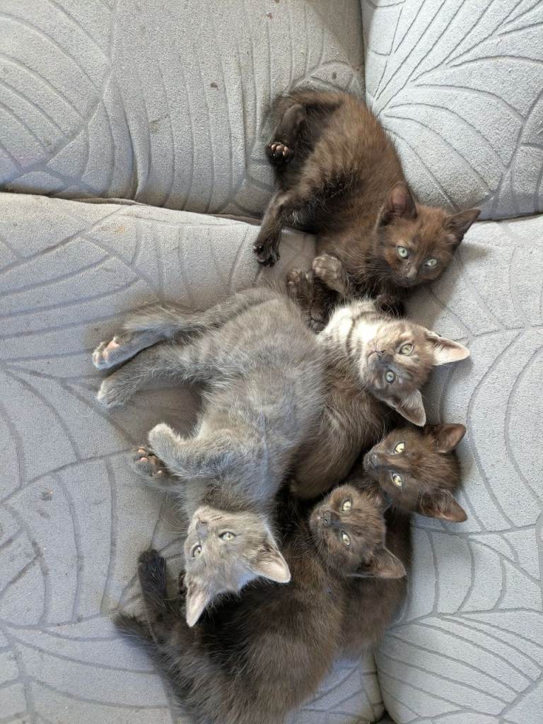 Mixed beautiful grey with dark grey stripes girl and black fluffy longhair boy kitten, playful and healthy, black boy kitten is quite grey girl very naughty and cute.