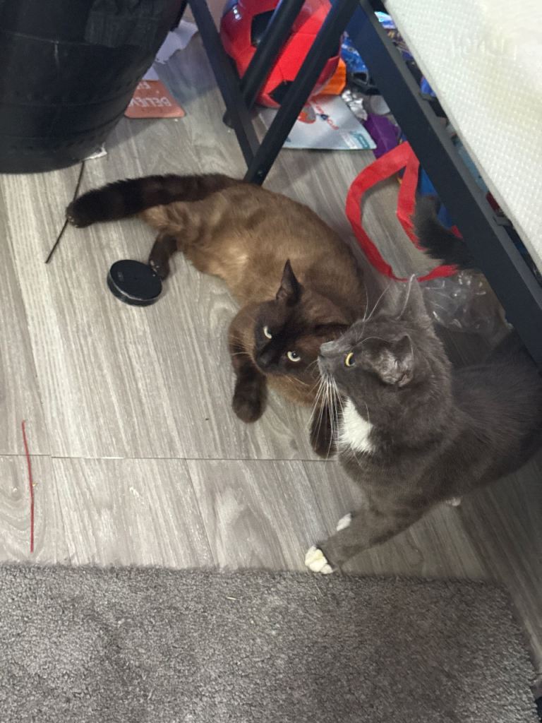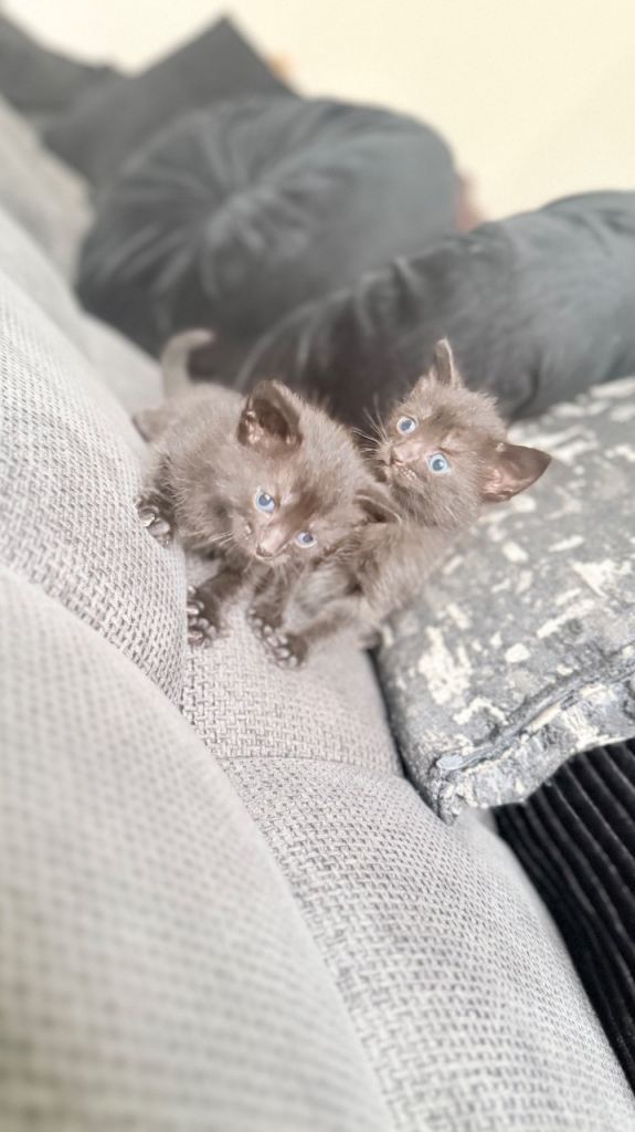* Their mum is a lovely grey domestic cat, and their dad is a handsome brown Siamese. They are all litter-trained, deflead, and dewormed.