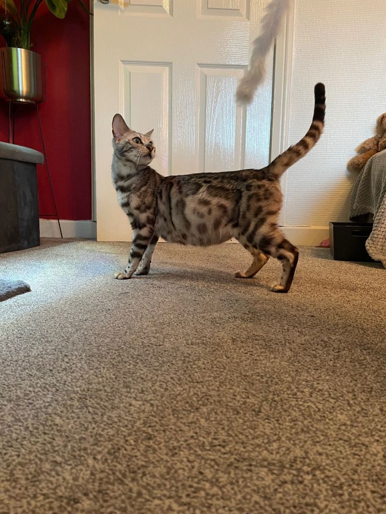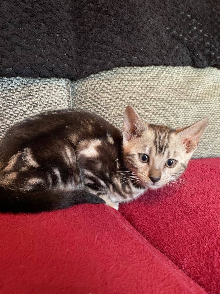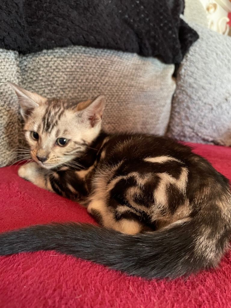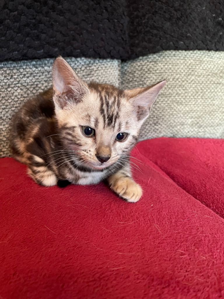 10 weeks old bengal kitten for sale. Snow dad and silver mom both pure breed bengals he is the last kitten looking for a good home. Not your typical bengal pattern but might improve with age very cute and quiet.