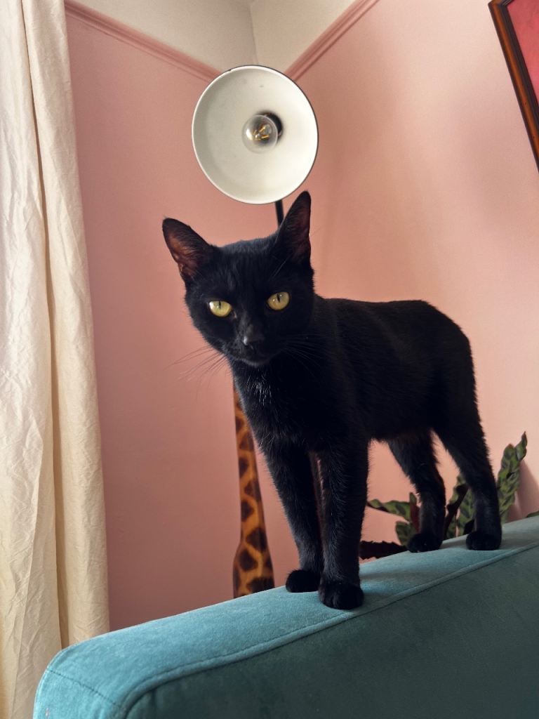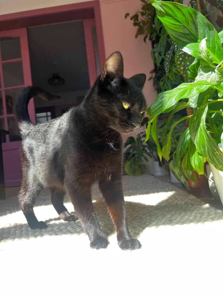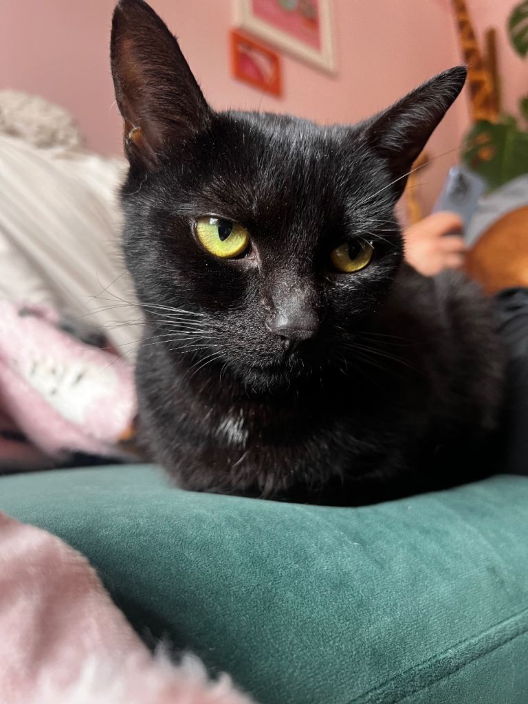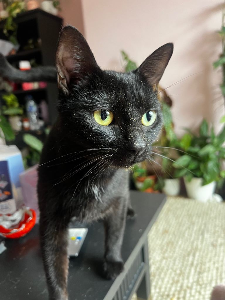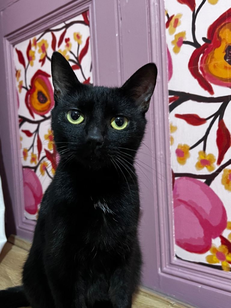 Meet Hex, she’s around 2 years old, all black with a couple of white hairs on her chest,