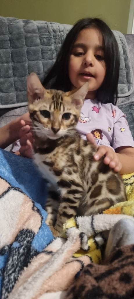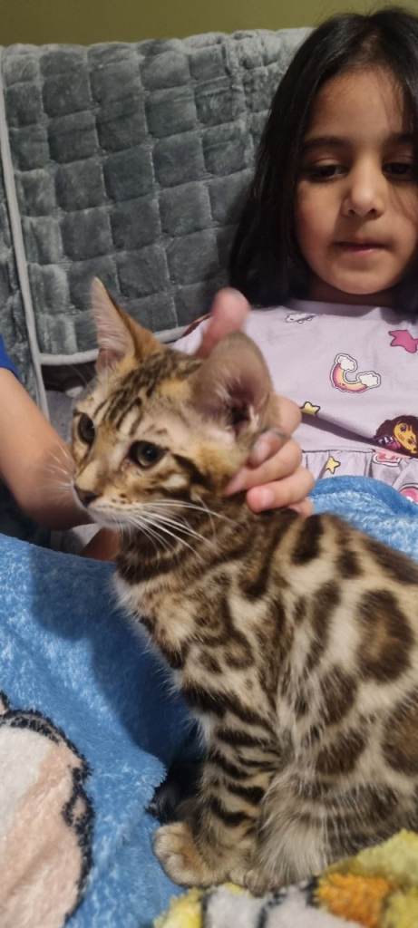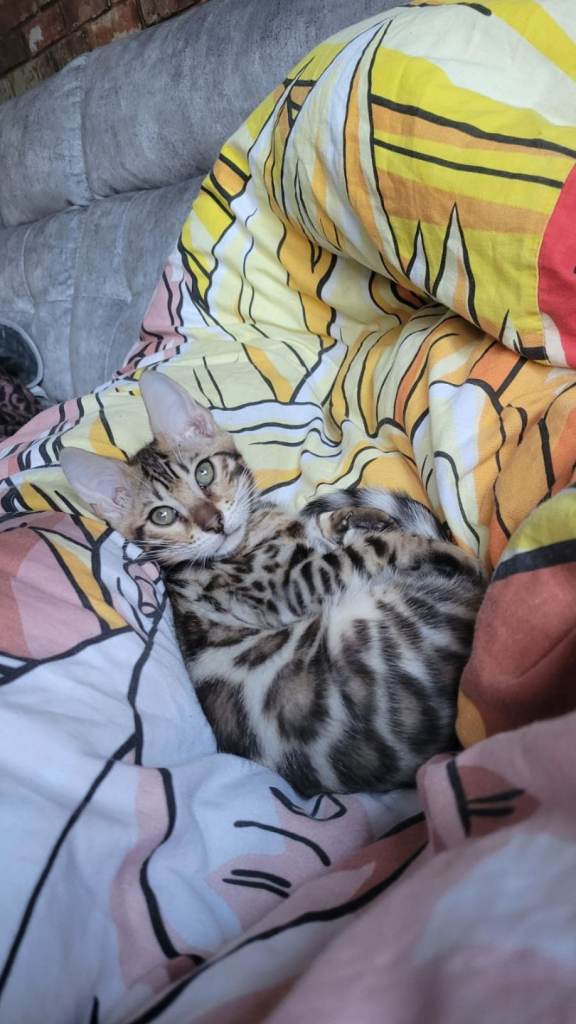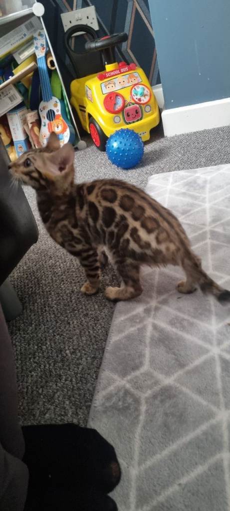 We have a beautiful 6-month-old Bengal kitten looking for a loving forever home. Gorgeous Bengal markings with a soft, shiny coat extremely playful, energetic, and intelligent Very affectionate once settled – loves attention and being around people Litter trained and well behaved in the home.This little one is a full pedigree & full of personality and energy, a true example of the Bengal breed. ✨ About the kitten: Age: 6 months Breed: Bengal Temperament: Playful, affectionate, and very intelligent Health: Vaccinated / flea & worm treated / vet checked. Litter trained and used to indoor living This kitten is incredibly social, loves children & attention, and would suit a home where they can get plenty of interaction and stimulation. Bengals are known for their playful nature and curiosity, so an active home would be ideal. 🏡 Perfect home: Someone with time to play and engage Ideally familiar with the Bengal breed or willing to learn! Indoor home or safe outdoor access Will come with cat food dry & wet, Toys/ Bed/scratch post. 💛 Serious enquiries only – we want to ensure the best home possible. Viewings can be arranged also. 📩 Please message for more details, photos, or to arrange a viewing.