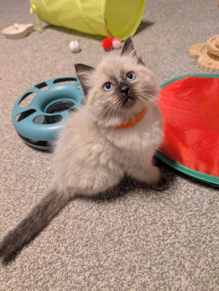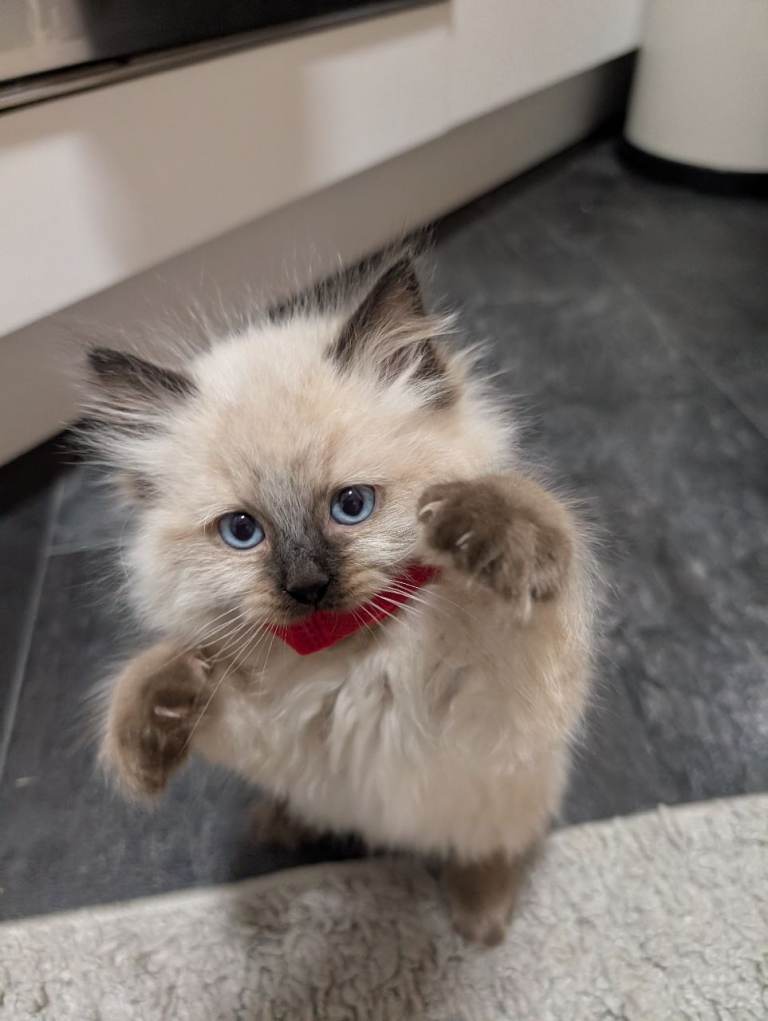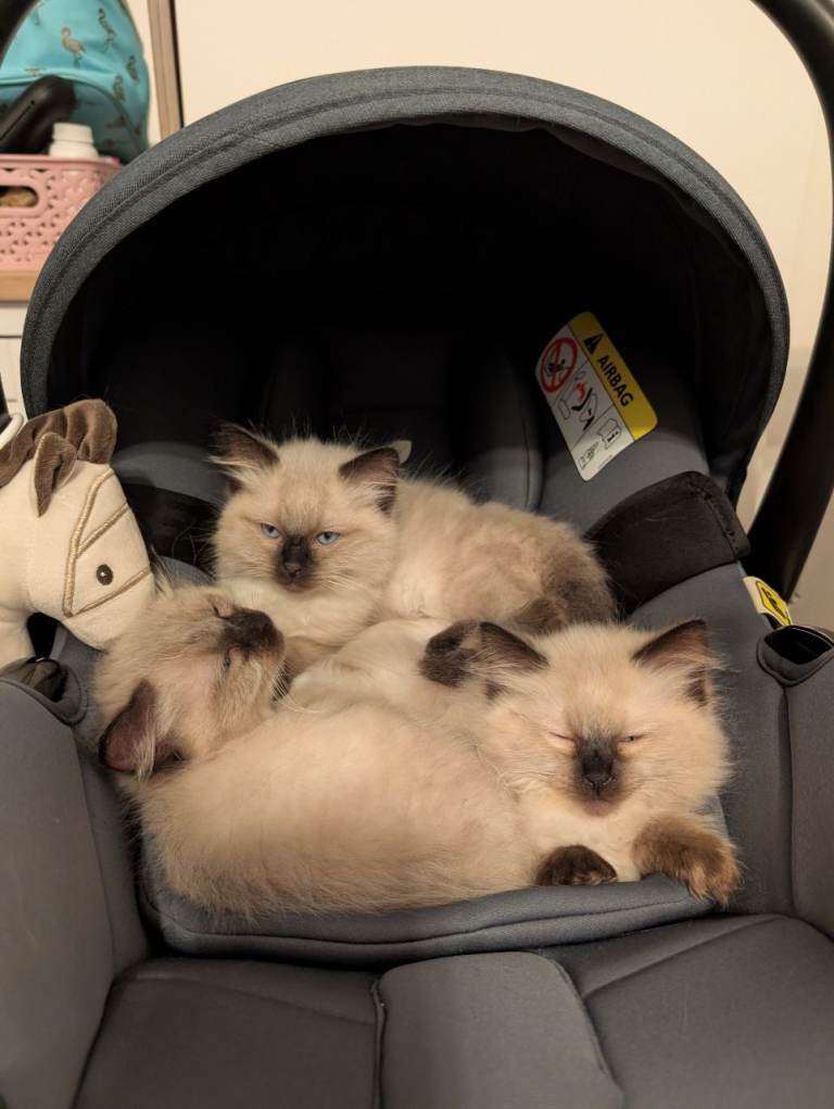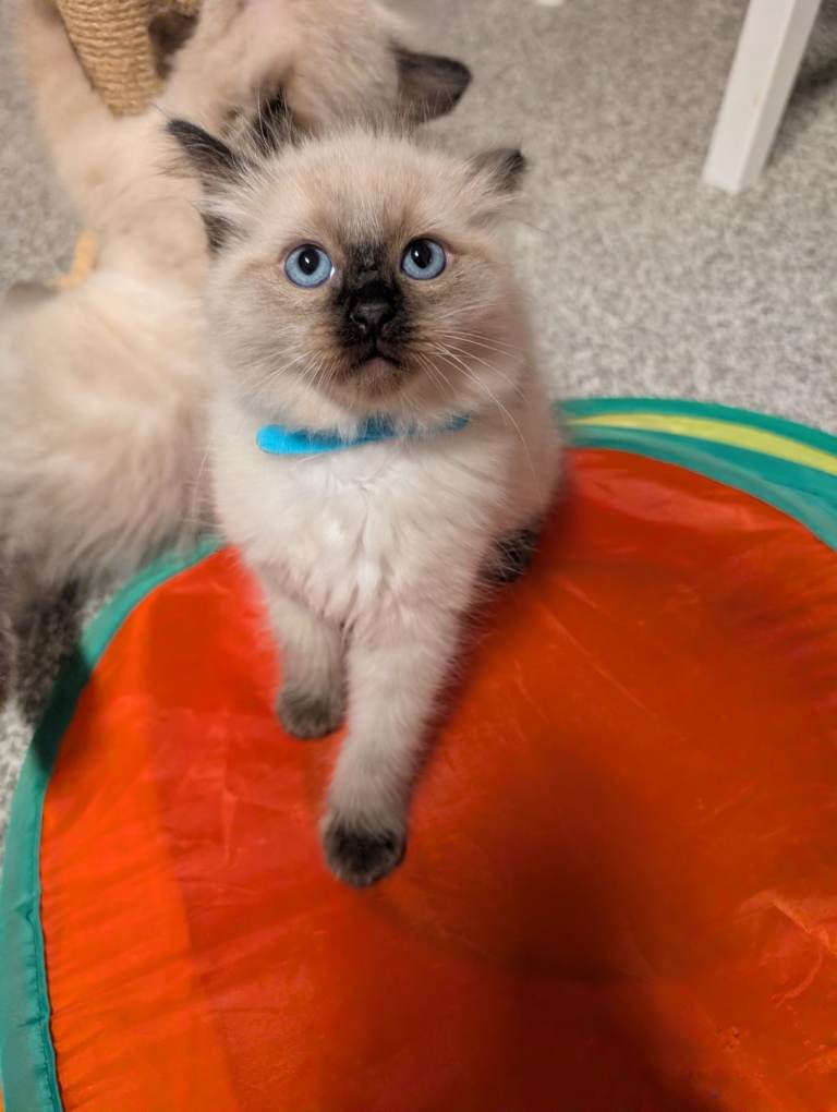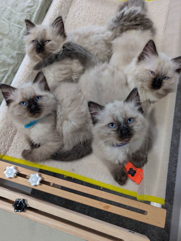 Our beautiful family cat has had a gorgeous litter of 5 seal point Ragdoll kittens, and we now have 4 boys remaining looking for their forever homes.
