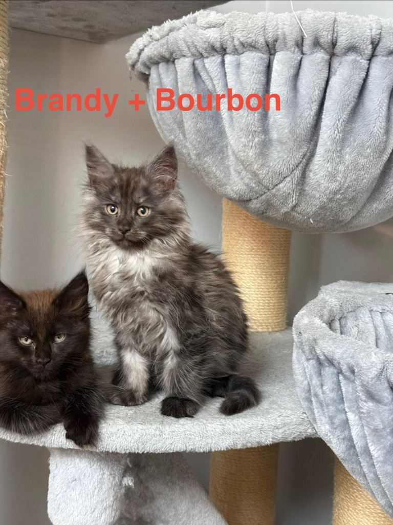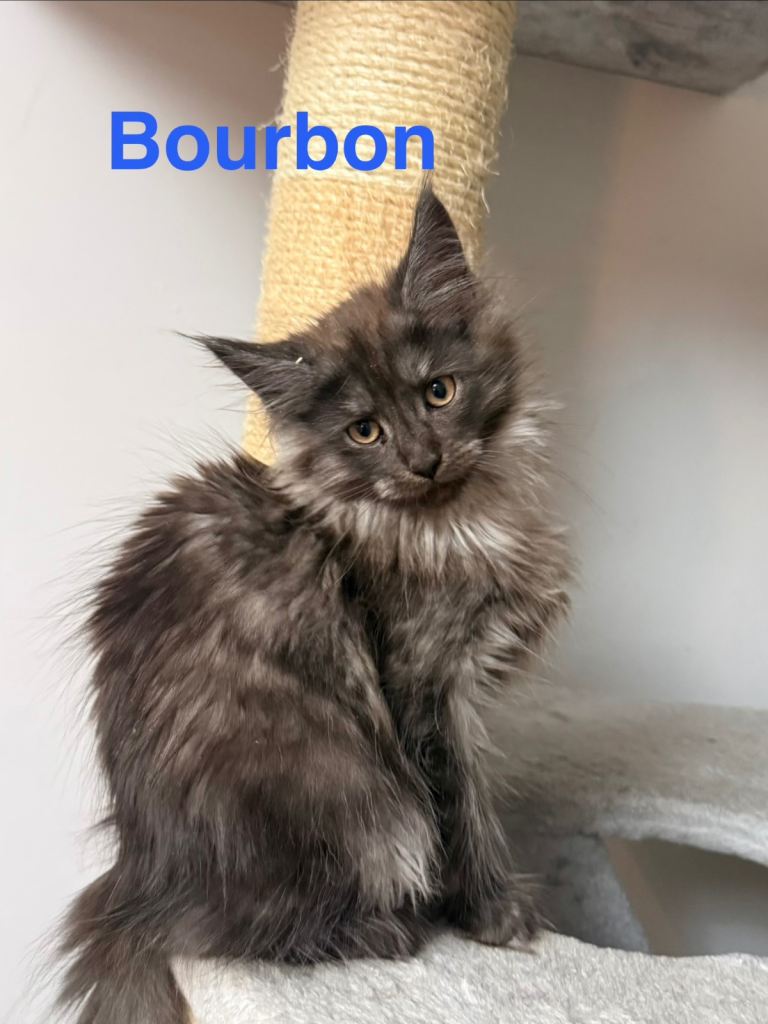 😸 - Bourbon (Grey Boy): Darker cute face, lighter mane, dark patches; super affectionate, loves laps and attention.