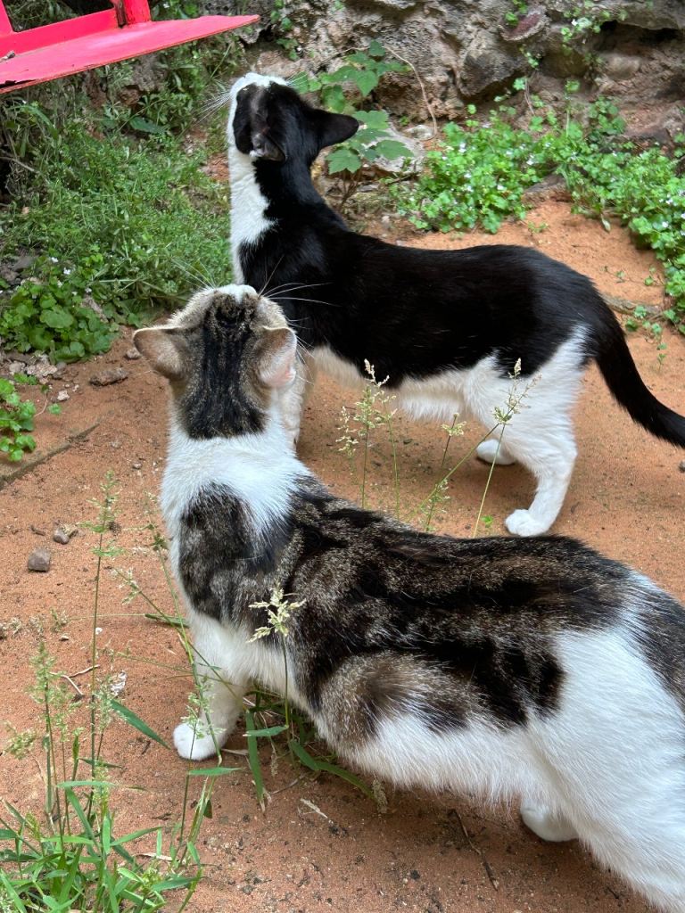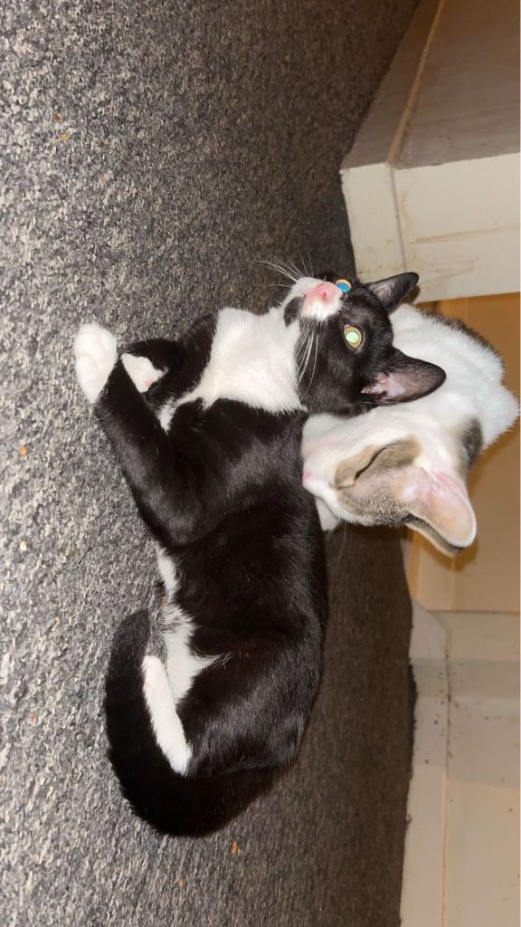 I am taking care for them for past 6 months they love eating chicken they love having attention they talkative they love cuddling they are very happy cats they good with kids