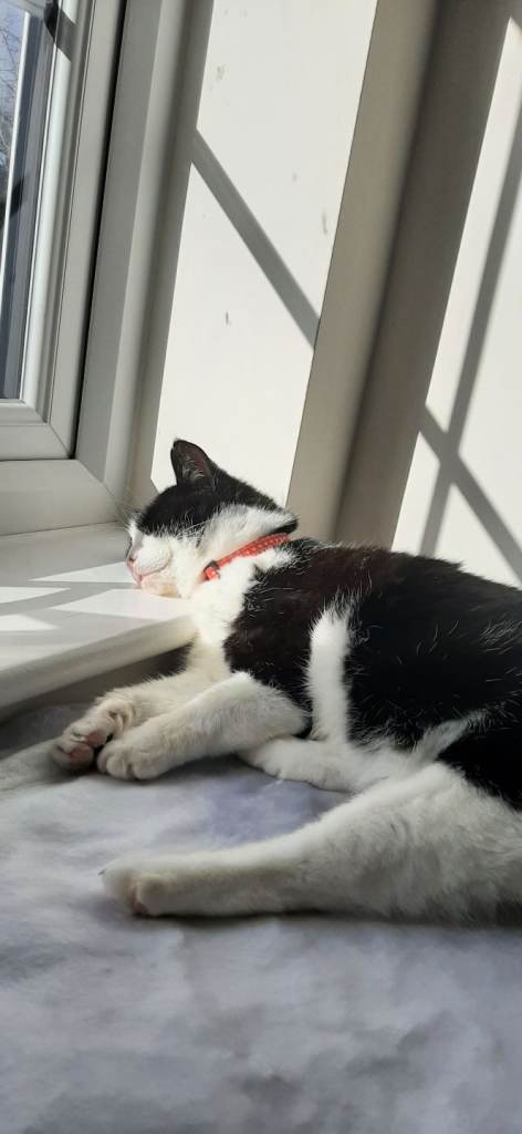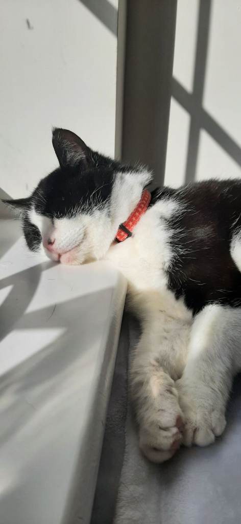 Blissey is microchipped and has been vet-checked. We want to be fully open that we have occasionally wondered if she may have minor vision issues, as she can bump into things when she’s startled or retreating back to her safe space. That said, she has not been diagnosed with any vision problems, and when she was checked by the vet in early 2024, we were told she was fine. She is able to jump onto chairs, move around the house, and respond normally, so it may simply be that she is a little clumsy.
