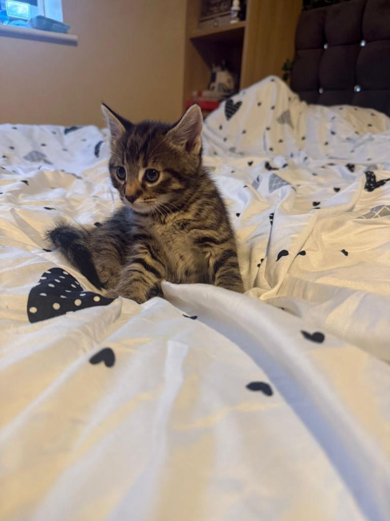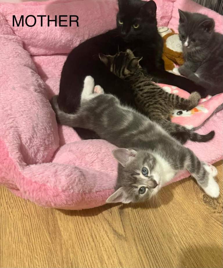 We have three beautiful kittens from our family cat looking for caring forever homes – two girls and one boy.