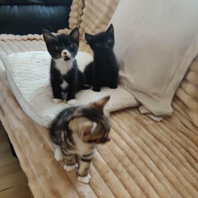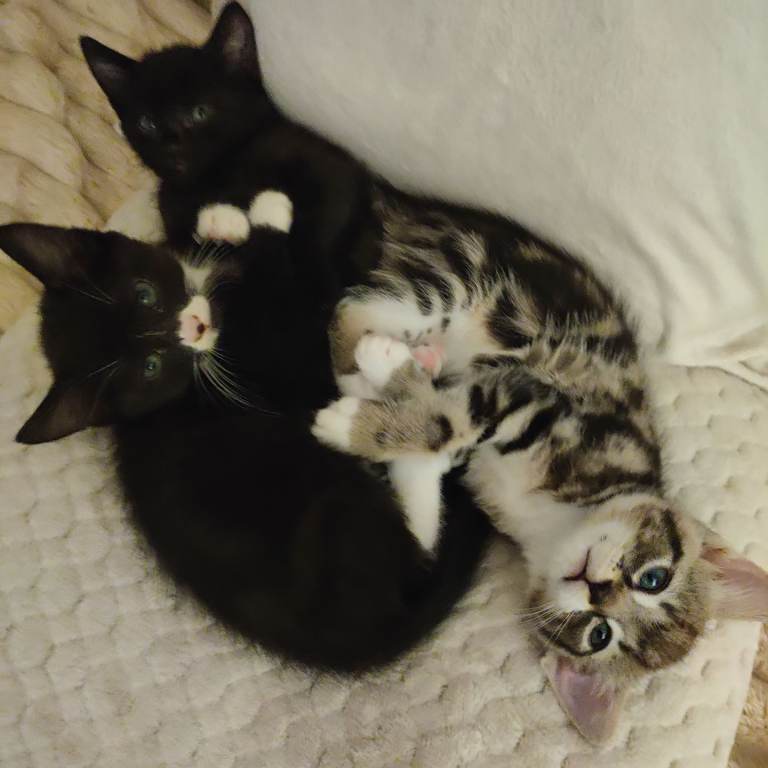Three wonderful boys are ready to go, waiting for a loving home. They are so sweet, mischievous, love to cuddle, they like peace and quiet, and it would be best if there was another cat in their new home, as they were raised with my other cats, dewormed, defleaed, and use the litter box. If you are interested, please contact me. Trzech cudownych chłopców jest gotowych do odbioru i czeka na kochający dom. Są tacy słodcy, psotni, uwielbiają się przytulać, cenią ciszę i spokój, a najlepiej, gdyby w ich nowym domu znalazł się jeszcze jeden kot, ponieważ wychowali się razem z moimi innymi kotami, zostali odrobaczeni, odpchleni i korzystają z kuwety. Zainteresowanych proszę o kontakt.