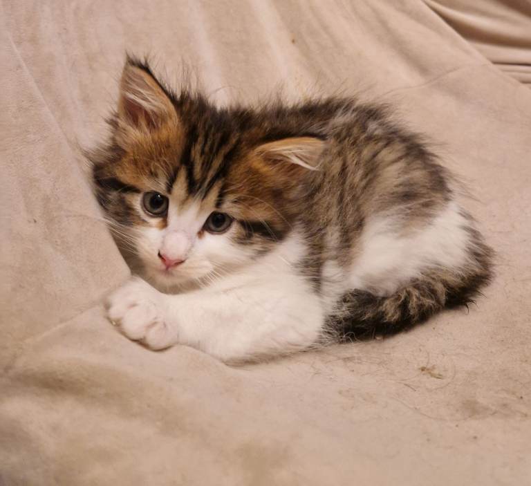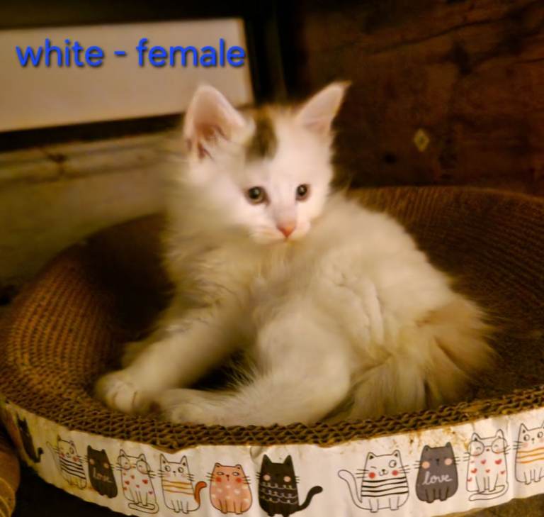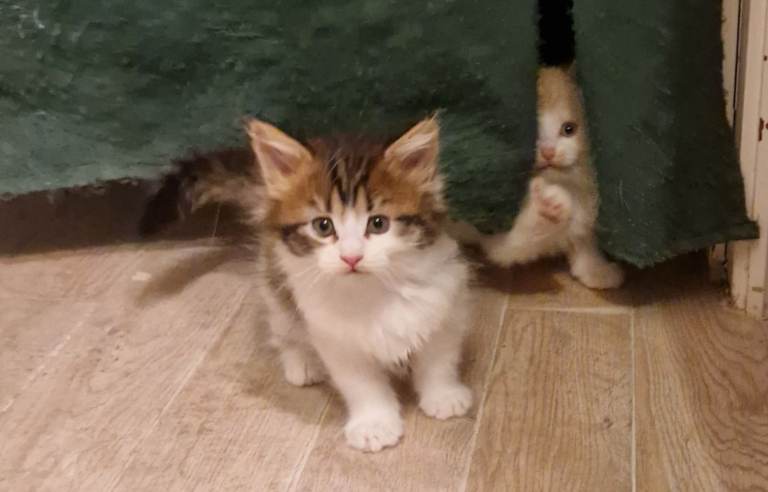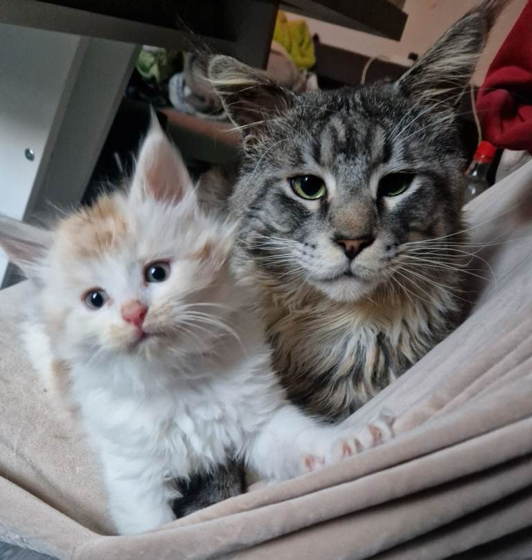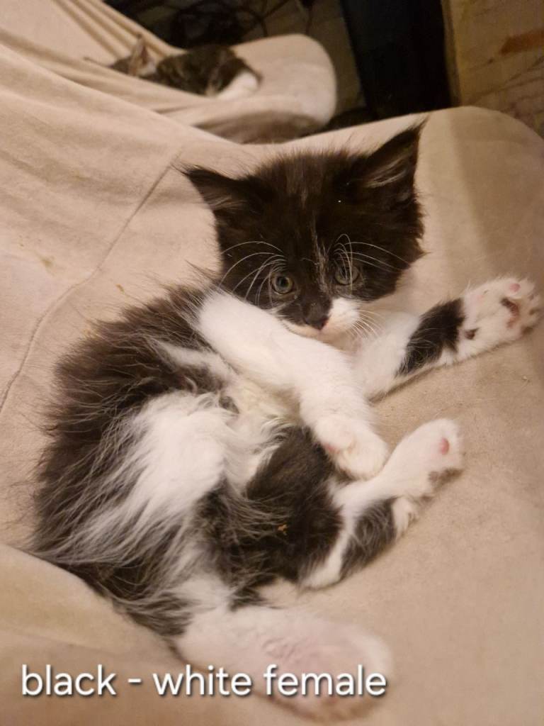 Litter-trained, they eat wet and dry food and drink water. Very energetic, playful, and sociable. We have children, a dog, and other cats in our home. Mom - Maine Coon mix. Dad - Full Maine Coon.