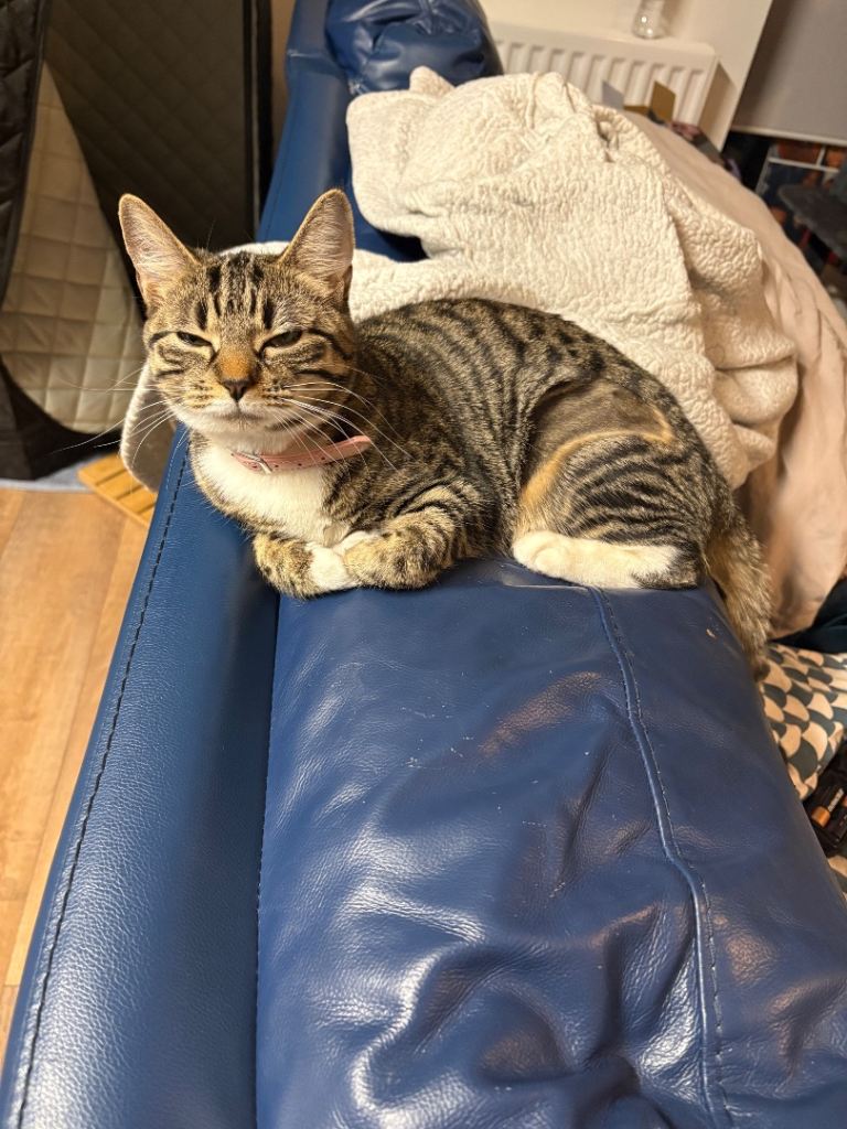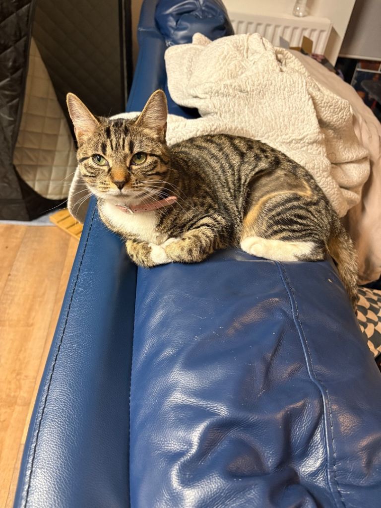 Jules / Julie Baby is so special she loves kisses she loves affection and she leans her head into your hand to hold her head often. She is a very sociable cat. Sadly my daughter is allergic and she needs to be rehoused to a loving home.
