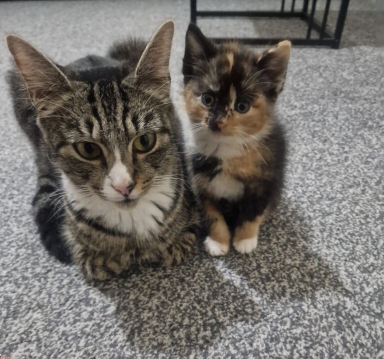 Two adorable tabby kittens looking for a forever loving home. Both girls. Eating both dry and wet food. Litter trained. Very playful and affectionate, especially around kids. The perfect companion.