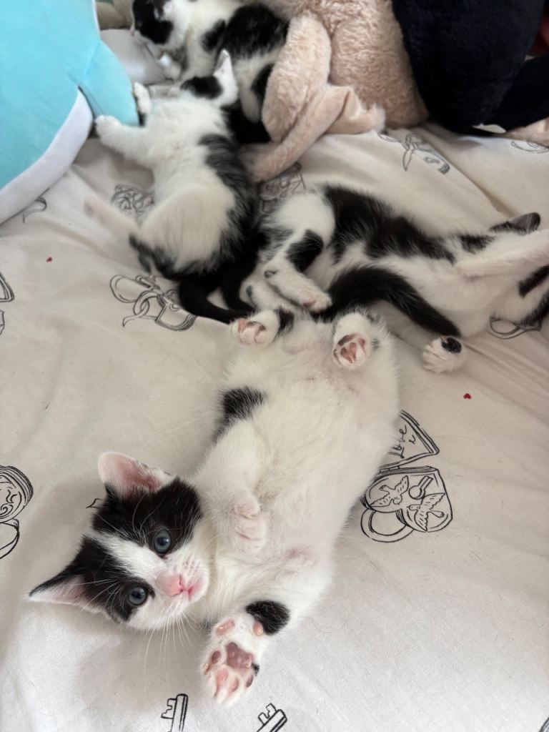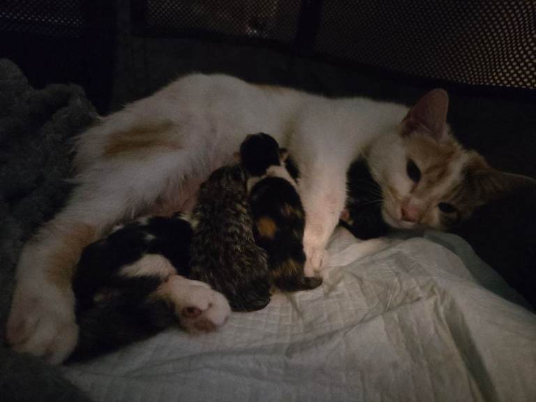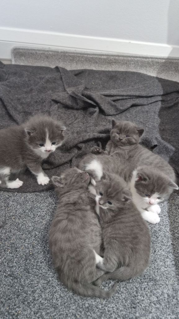 Kitten are due to leave in under 4weeks the 3 ginger ones or male and the two grey or girls . Mother and father on the picture
